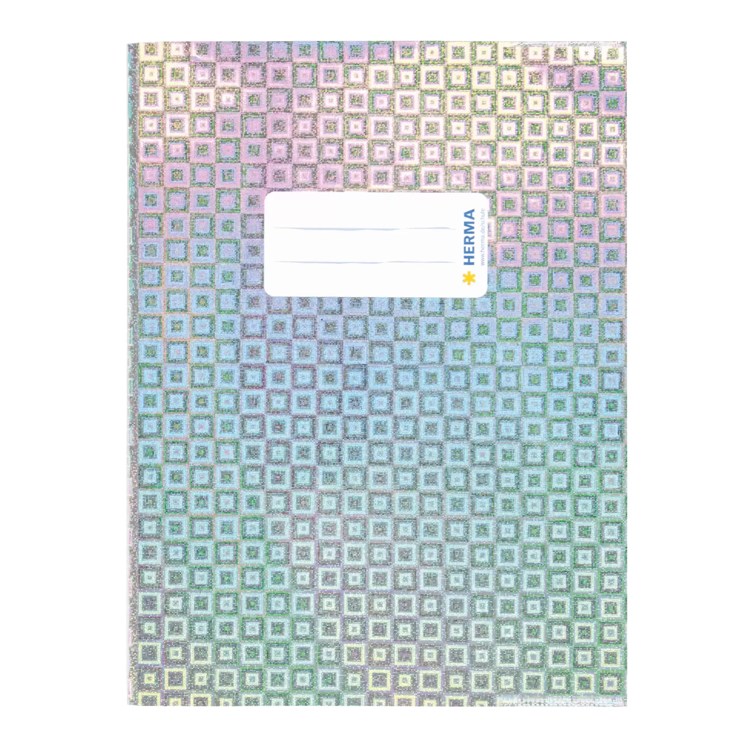 Deze glinsterende A5-schriftkaft van HERMA is een echte blikvanger: dankzij de opvallende, holografische glansfolie krijgt de zilverkleurige beschermhoes in het licht een heel bijzondere eigenschap. Valt er licht op de omslag, dan betovert hij door bonte regenboogkleuren die prachtig glinsteren en glitteren. Het fijne patroon dat op de folie is geprint, komt daardoor nog beter uit. De beschermkaft van HERMA onderscheidt zich behalve door het buitengewone design ook door de praktische functionaliteit. Het robuuste materiaal polypropyleen is een sterke kunststof die alle documentatiemateriaal, rekenboekjes, schrijf- en andere schoolschriften in DIN A5-formaat veilig beschermd tegen bijvoorbeeld stof en vlekken en tegen beschadiging door langdurig gebruik. Bovendien wordt het risico van vervelende ezelsoren aan de hoeken geminimaliseerd, waardoor schriften en boekjes er langer 'als nieuw' uitzien. Daarnaast beschikt de beschermkaft over een aan de voorkant aangebracht etiket, waarop nuttige informatie kan worden geschreven. Hierop schrijft de eigenaar van het schrift op welke school of in welke klas hij of zij zit of andere, individuele gegevens. Deze schriftomslag geeft aan het leven van alledag een vleugje magie en zorgt tegelijkertijd voor nette schriften die lang meegaan.