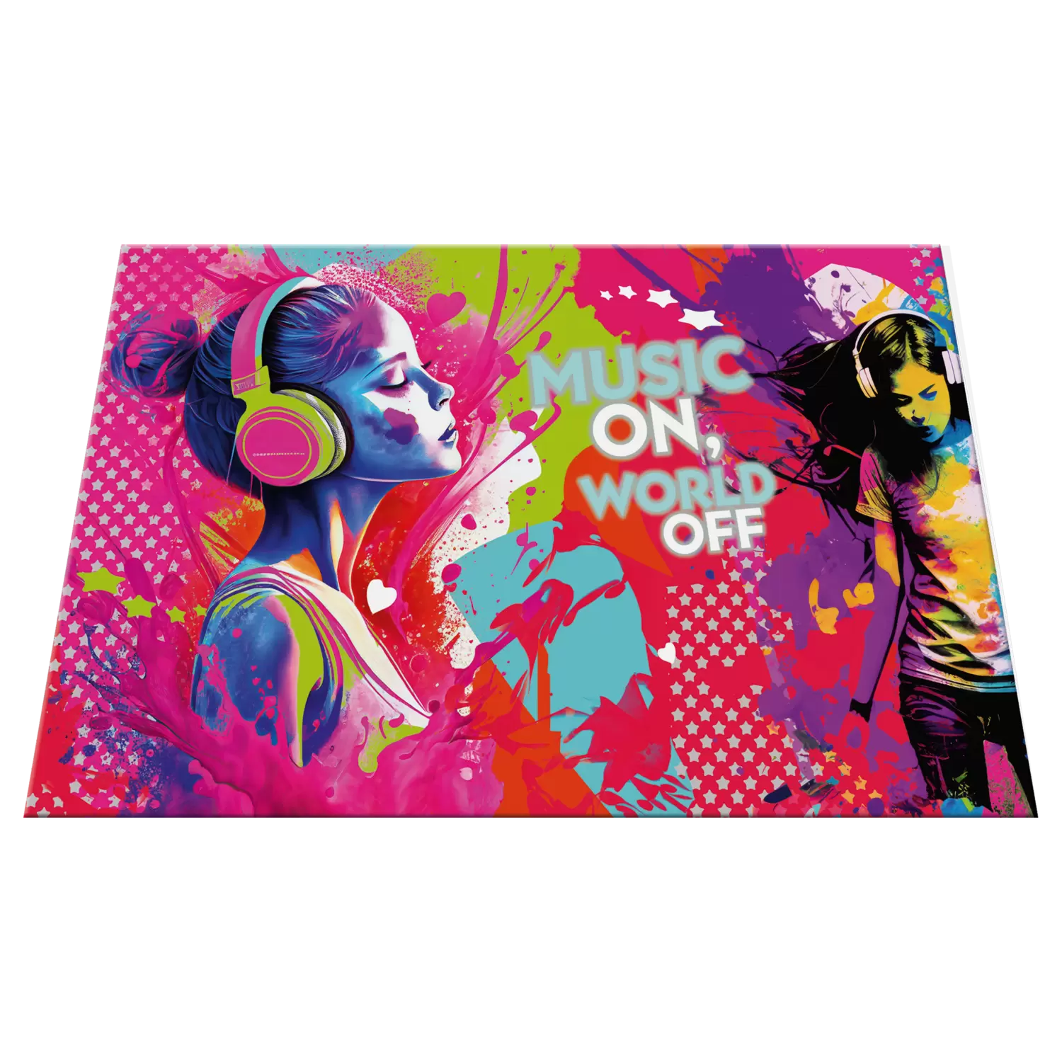 • Kleurrijke schrijfonderlegger met kleurrijk motief 'Music Girl' en softtouch-oppervlak