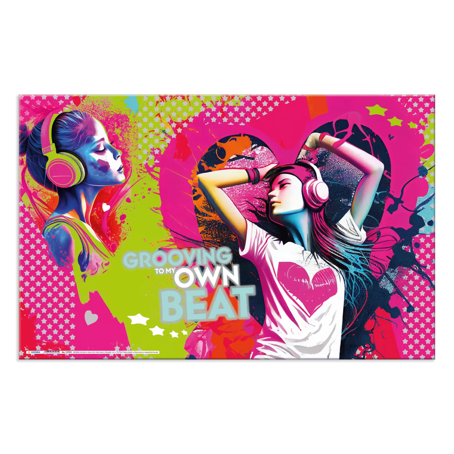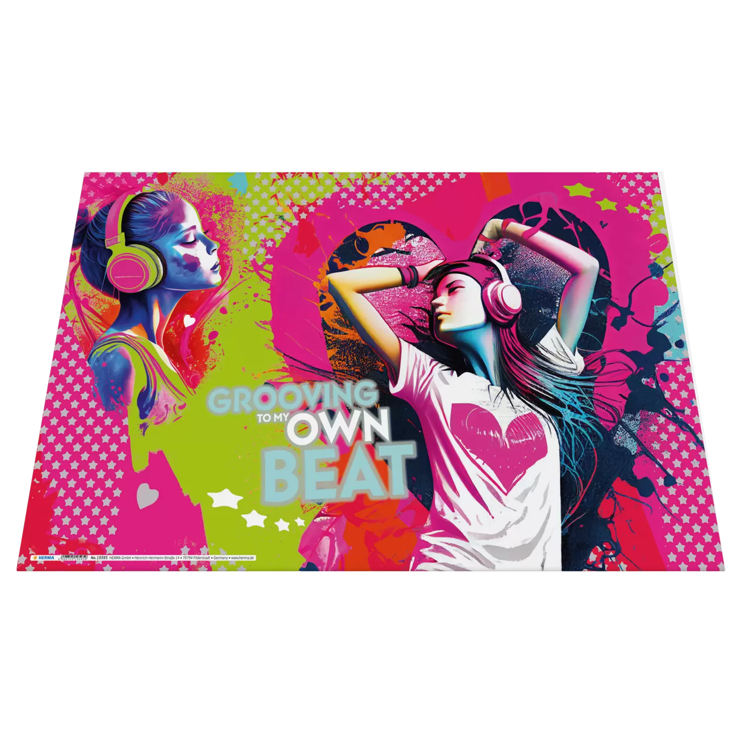 De stevige schrijfonderlegger met het trendy Musi Girl-motief is dé hit bij kinderen en tieners! De onderlegger ziet er niet alleen super uit, hij laat zich ook gemakkelijk schoonmaken en beschermt het bureau. Schrijven, tekenen, schilderen, kleien, knutselen: Een nette oplossing. De schrijfonderlegger is een echte blikvanger op het bureau. Hij is voor links- en rechtshandigen even geschikt, omdat hij geen storende rand of andere kenmerken heeft die het tekenen of schrijven zouden kunnen hinderen. Vuil en ongerechtigheden zijn bovendien heel gemakkelijk van de bureau-onderlegger van HERMA te verwijderen, omdat het oppervlak glad en gemakkelijk afwasbaar is. Hij beschermt gladde, kwetsbare oppervlakken tegen krassen of andere beschadigingen, die bij dagelijks gebruik gemakkelijk kunnen voorkomen. Bovendien kan hij aan weerszijden worden gebruikt - eenvoudig de onderlegger omdraaien en nog een ander, uniek motief ontdekken. Verkrijgbaar in het formaat 550 x 350 mm.