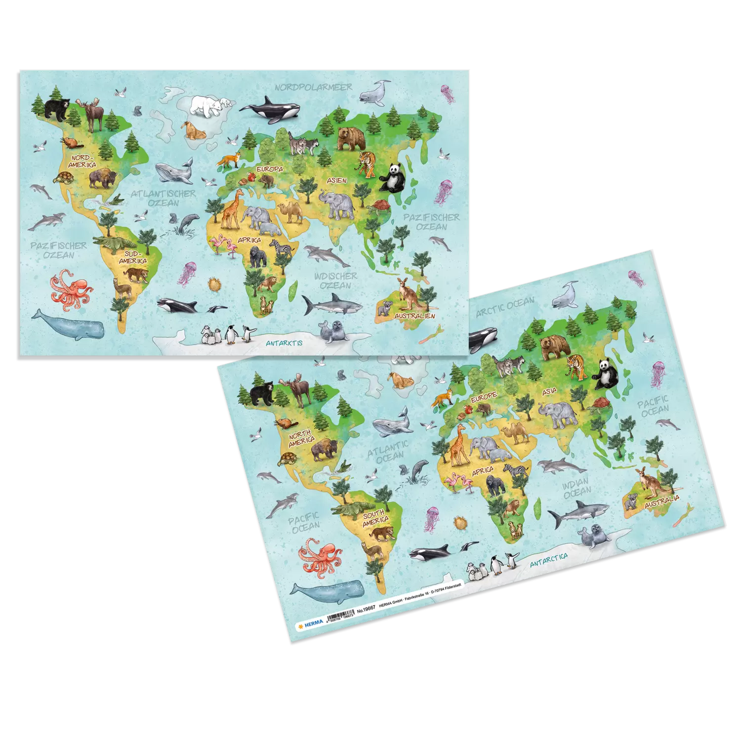 Schrijfonderleggers 550 x 350 mm Wereldkaart