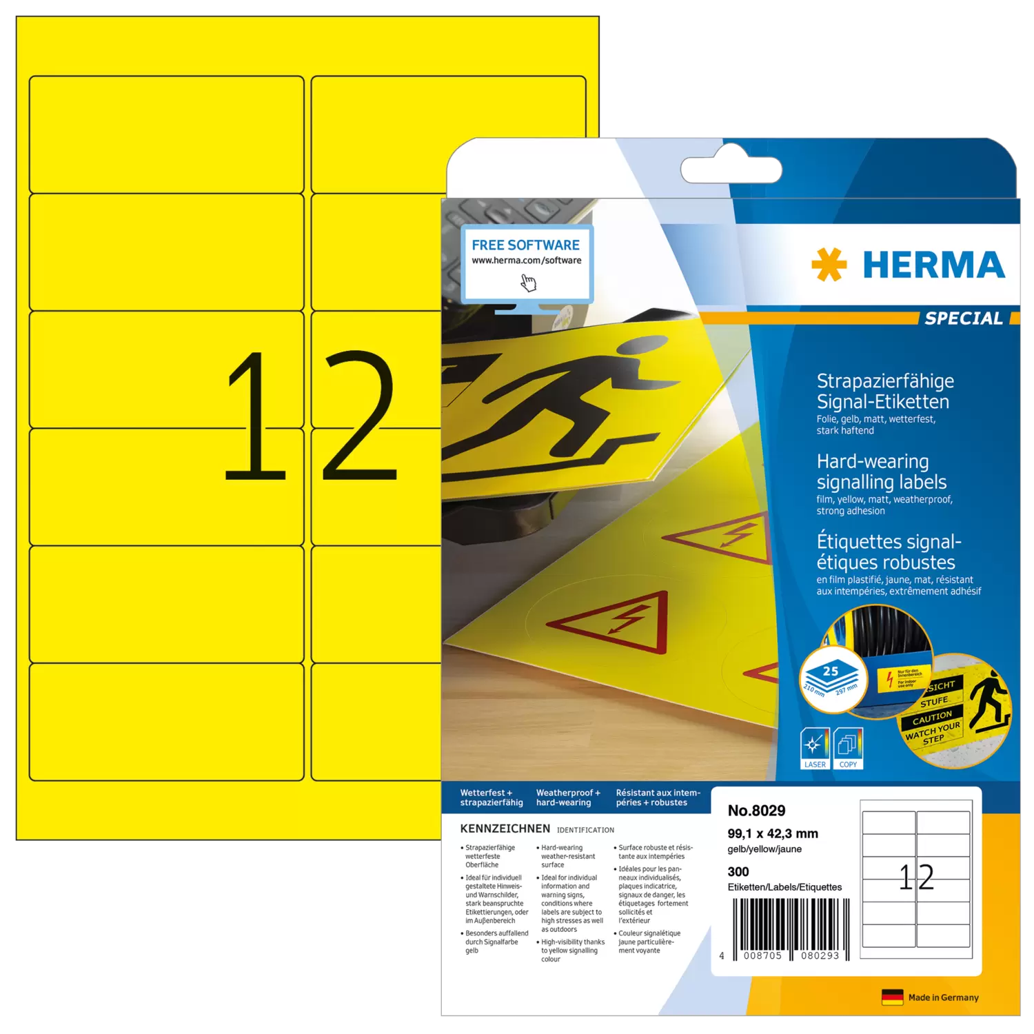 Weervaste folie-etiketten, geel, A4, 99,1 x 42,3 mm, extreem sterk hechtend