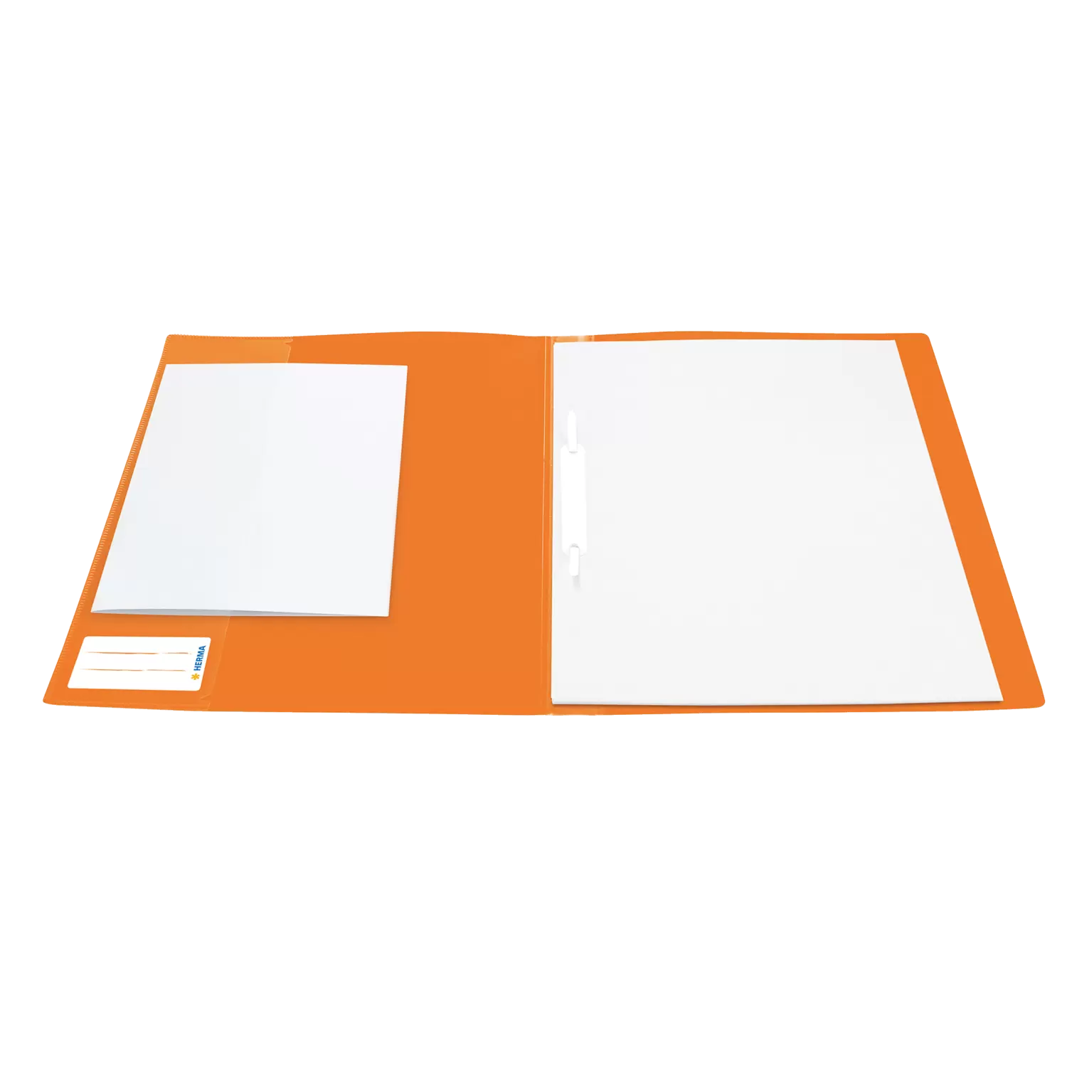Snel en eenvoudig organiseren: Met deze doorschijnende oranje map is het heel eenvoudig om orde en overzicht te houden. Het maakt niet uit voor welk doel u de plastic map nodig hebt, werkbladen en documenten in DIN A4-formaat kunnen er gemakkelijk in worden gesorteerd en opgeborgen. Of het nu voor school, kantoor, de universiteit of voor belangrijke documenten thuis is – door de transparante voorkant of het geïntegreerde opschriftetiket is direct te zien wat er in de map zit. Met de oranje map kunnen verschillende aantekeningen heel eenvoudig worden gecategoriseerd en kunt u alle documenten die belangrijk voor u zijn, organiseren, sorteren en opbergen zoals u wilt. Door het slanke ontwerp en het geringe gewicht kan de map heel eenvoudig worden meegenomen. Door het naamplaatje weet iedereen meteen van wie de map is. In het steekvak binnenin kunnen bovendien extra vellen papier zonder perforatie worden gestoken. De transparante polypropyleen kaft beschermt de inhoud van de snelhechter, zodat de documenten ook goed beschermd zijn tegen vocht en vuil. Door de robuuste metalen klem worden de materialen in de map stevig bij elkaar gehouden en zijn ze goed beschermd.