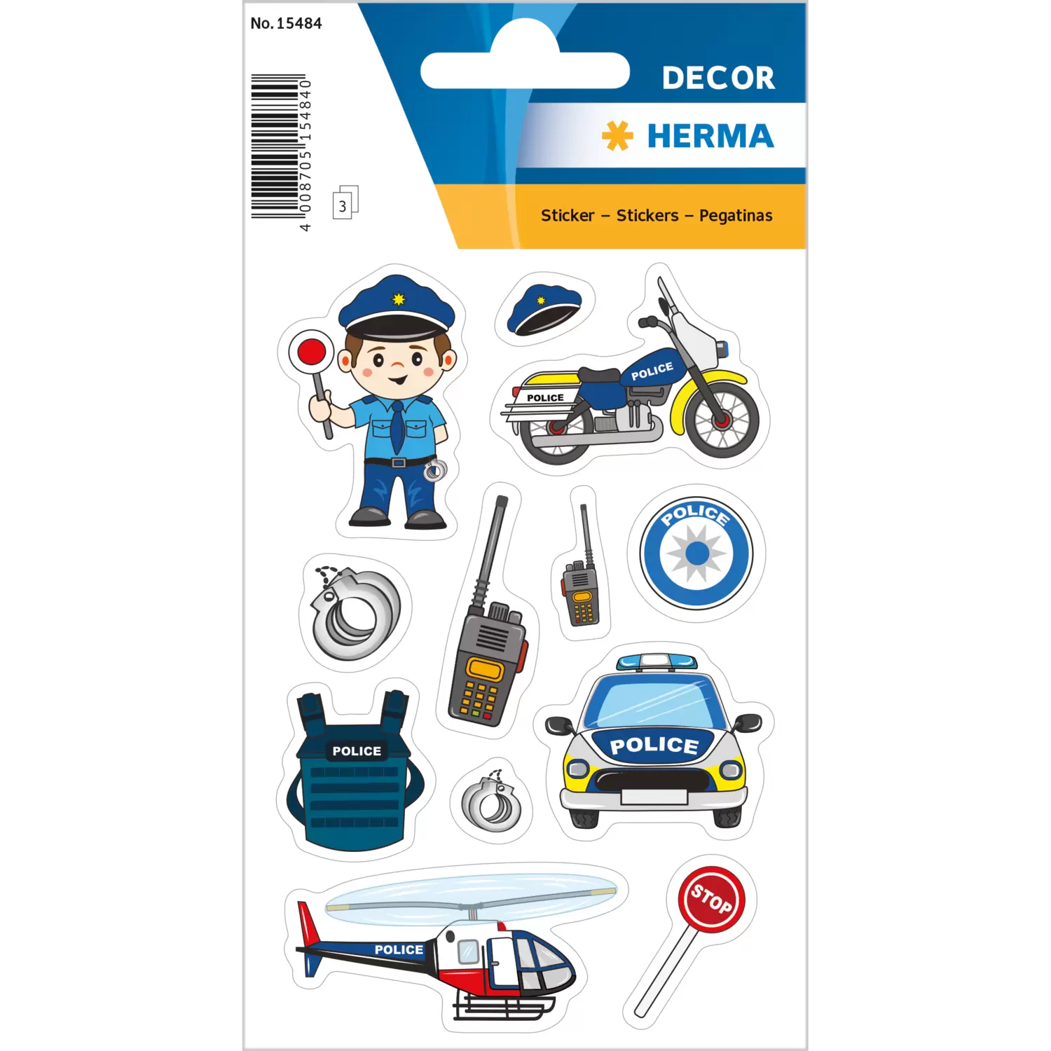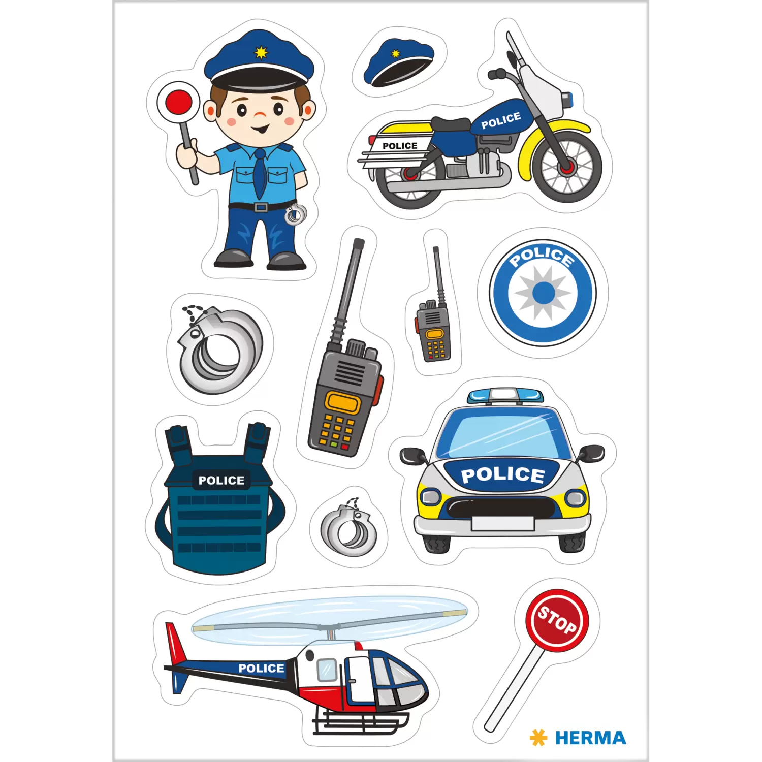 Prachtige gekleurde papieren stickers met coole getekende politie-motieven. In elke verpakking bevinden zich 3 stickervellen met 12 verschillende stickers per vel. De stickers zijn gemaakt van hoogwaardig papier, permanent hechtend en zelfklevend op nagenoeg alle oppervlakken. Ze kunnen er heel gemakkelijk van worden verwijderd en naar believen opnieuw worden opgeplakt. Ideaal als versiering voor schriften, ordners en mappen, om te knutselen of voor sparen en ruilen.