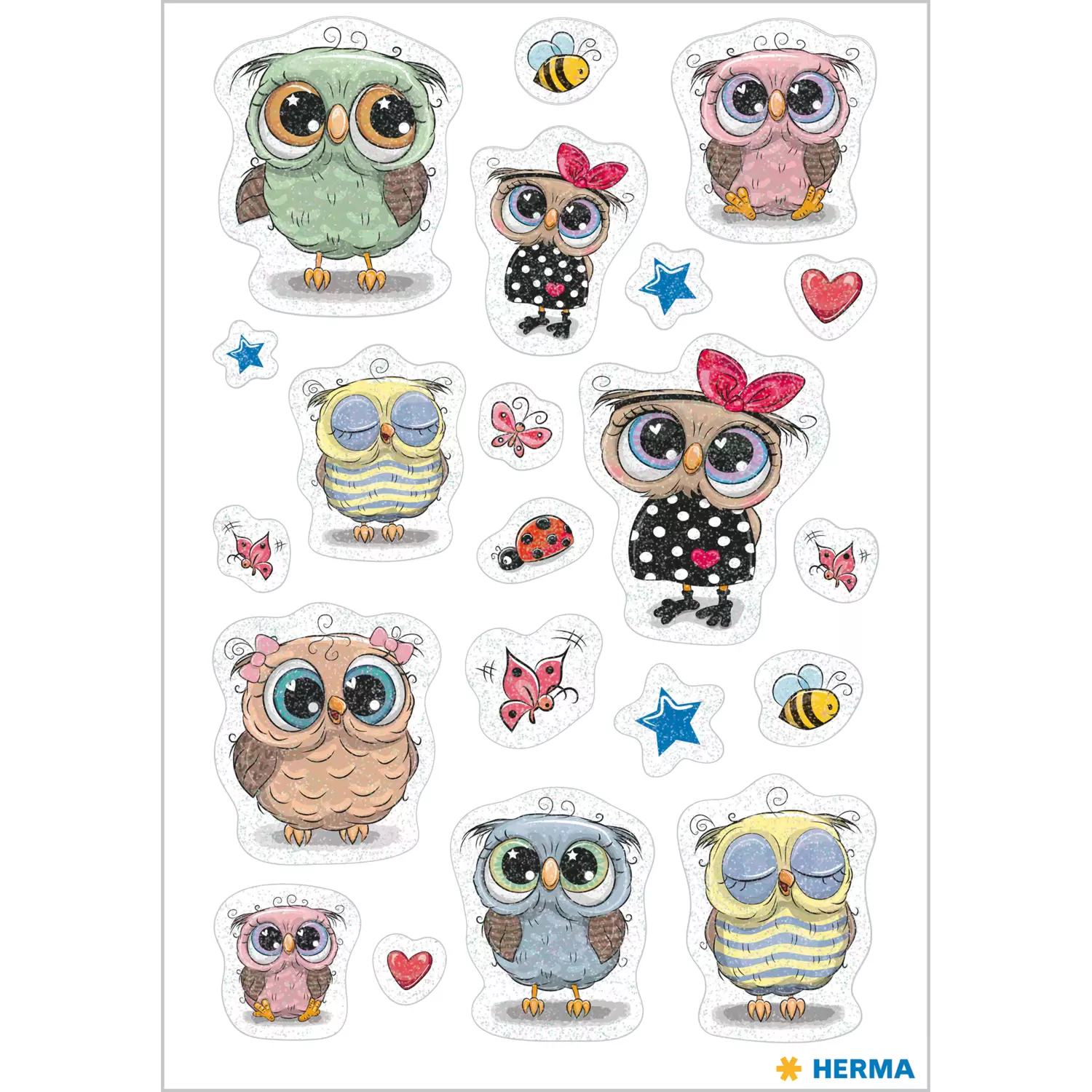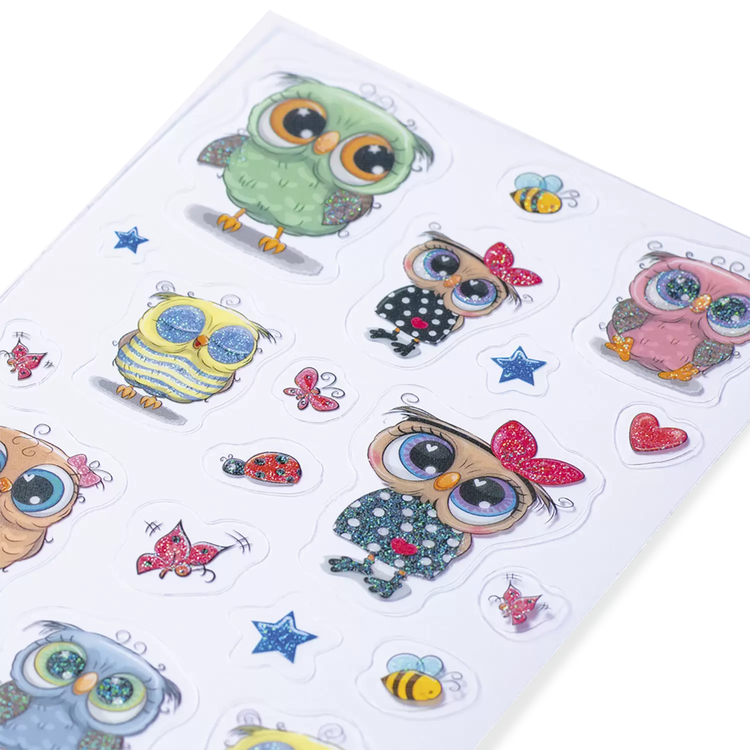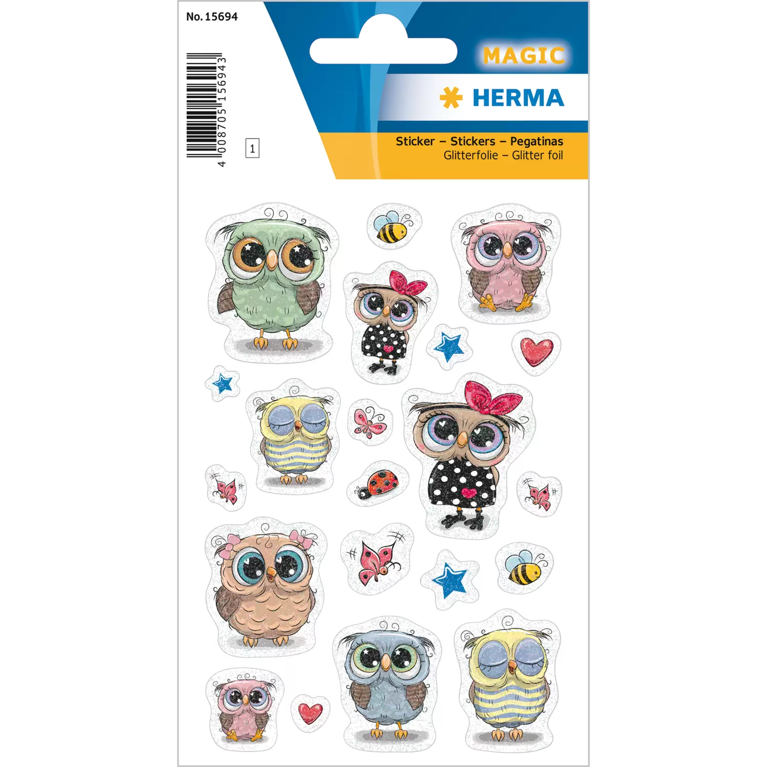 hoogwaardige met glitters versierde stickers met schattige uilenmotieven, 21 MAGIC stickers op een vel, vinden groot en klein leuk,gemaakt van hoogwaardig papier met leuk glitter-effect, bijzonder goed geschikt voor versieren, om te sparen en te ruilen, permanent hechtend en zelfklevend op veel oppervlakken, eenvoudig van het papier af halen en opplakken
