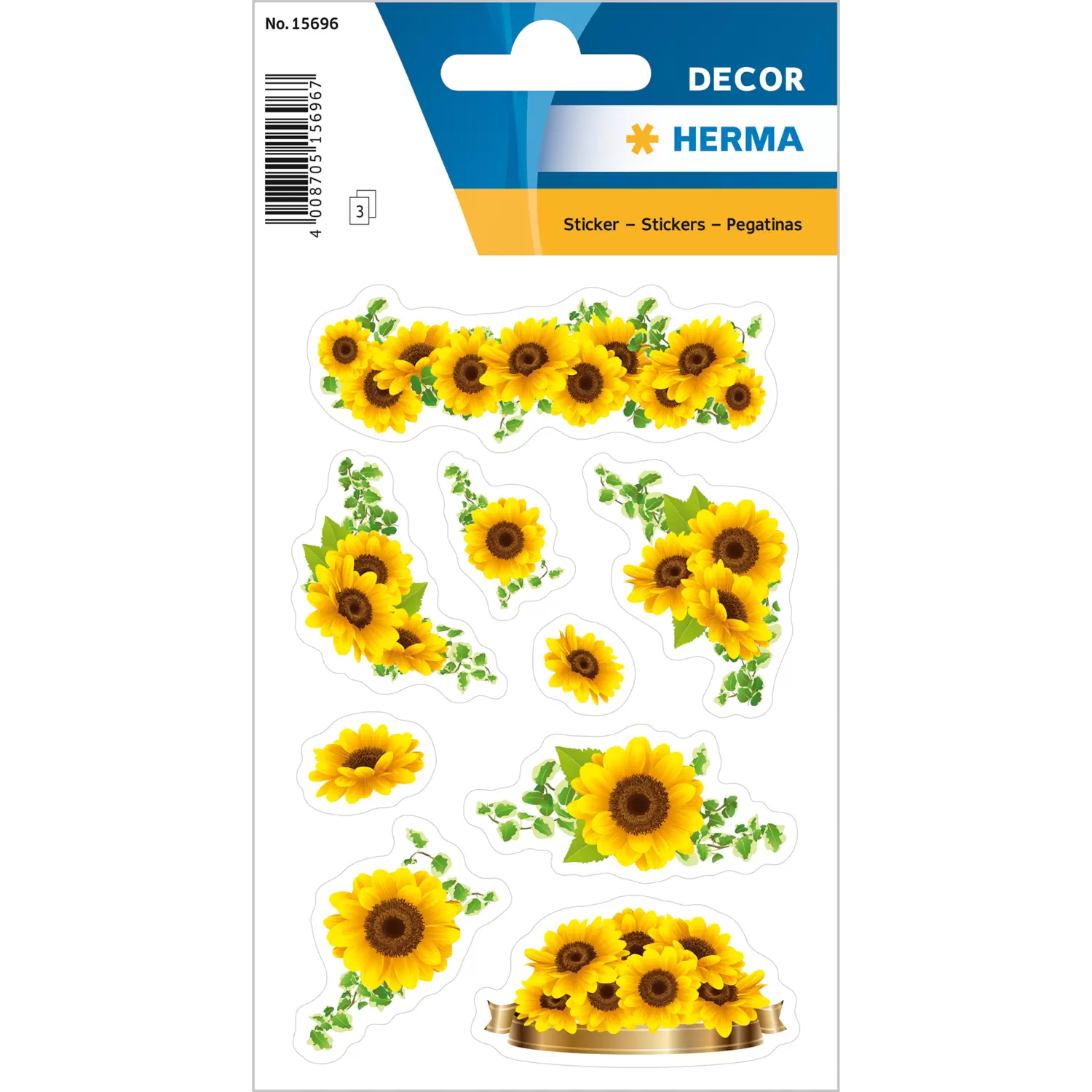 prachtig getekende zonnebloemen in stralende kleuren, in totaal 27 stickers op drie vellen, vinden groot en klein leuk, gemaakt van hoogwaardig papier, bijzonder goed geschikt voor versieren, sparen en ruilen, permanent hechtend en zelfklevend op veel oppervlakken, eenvoudig van het papier af halen en opplakken