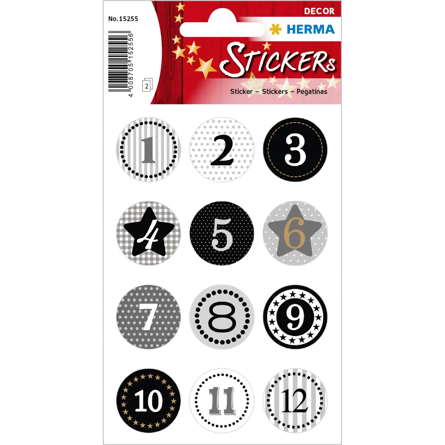 • Adventkalenderstickers met de cijfers 1 - 24 in stylish design met fijn glittereffect