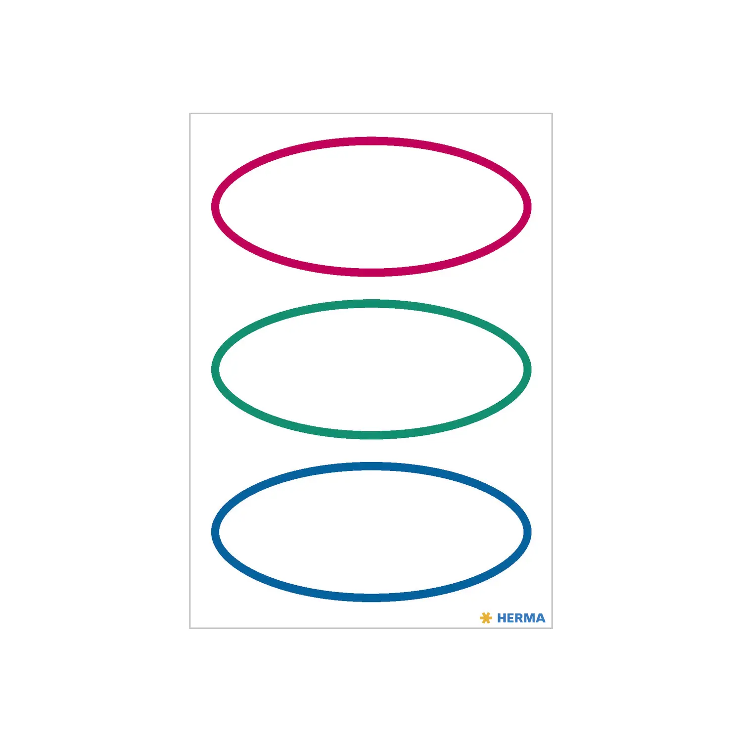 • Ovale huishoud-etiketten – wit met gekleurd kader in het formaat 76 x 35 mm, 18 stuks per verpakking