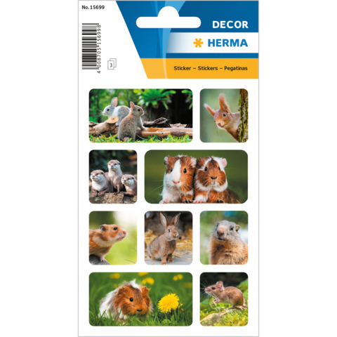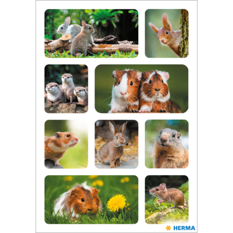 Prachtige papieren stickers met foto's van schattige knaagdieren. Van de partij zijn kleine haasjes en cavia's, schattige hamsters en muizen, toffe eekhoorntjes, otters en marmotten. In elke verpakking bevinden zich 3 stickervellen met elk 9 verschillende vierkante stickers met afgeronde hoeken. De stickers zijn gemaakt van hoogwaardig papier, permanent hechtend en zelfklevend op nagenoeg alle oppervlakken. Ze kunnen er heel gemakkelijk van worden verwijderd en naar believen opnieuw worden opgeplakt. Ideaal als versiering voor schriften, ordners en mappen, om te knutselen of voor sparen en ruilen.