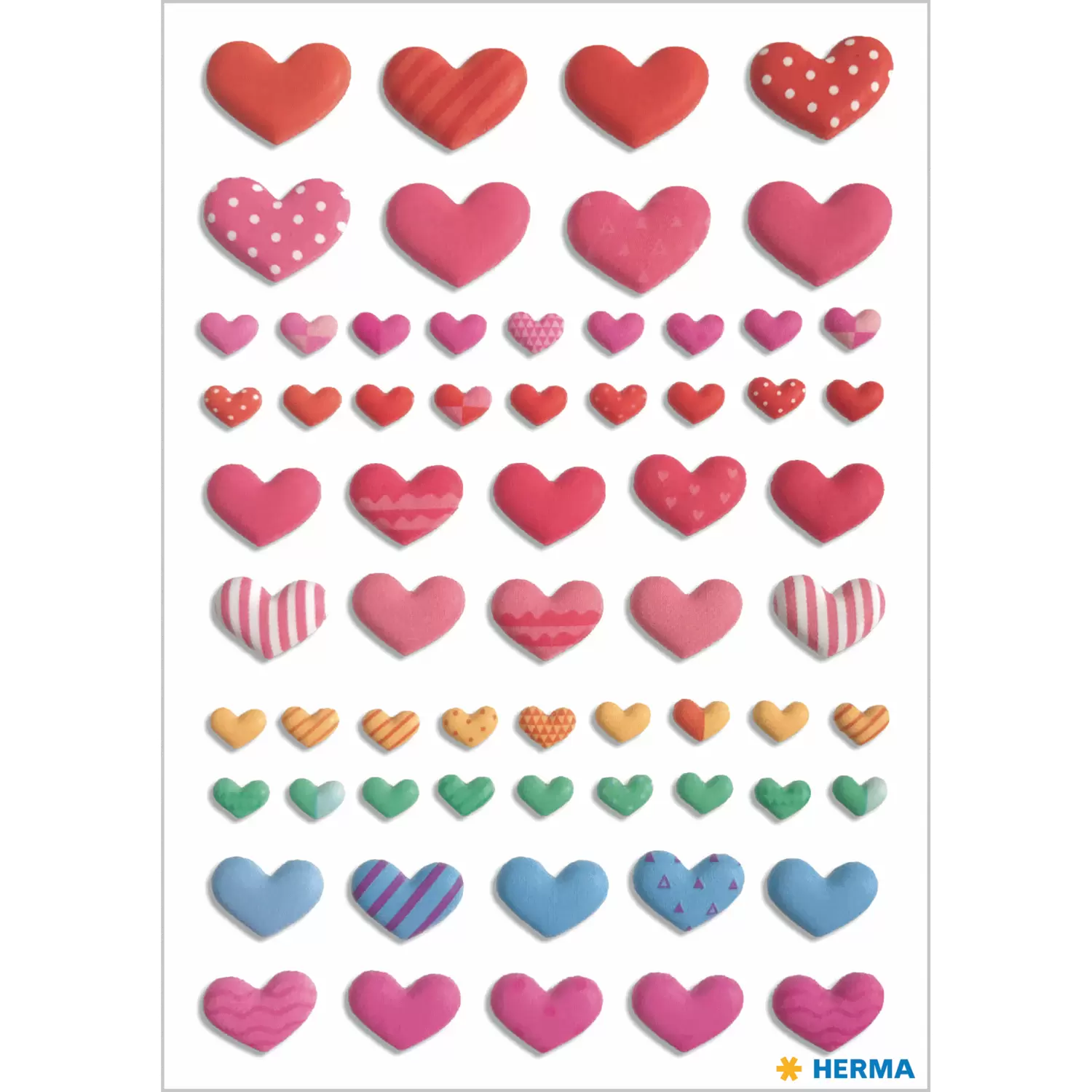 Stickers vrolijk gekleurde harten, puffy
