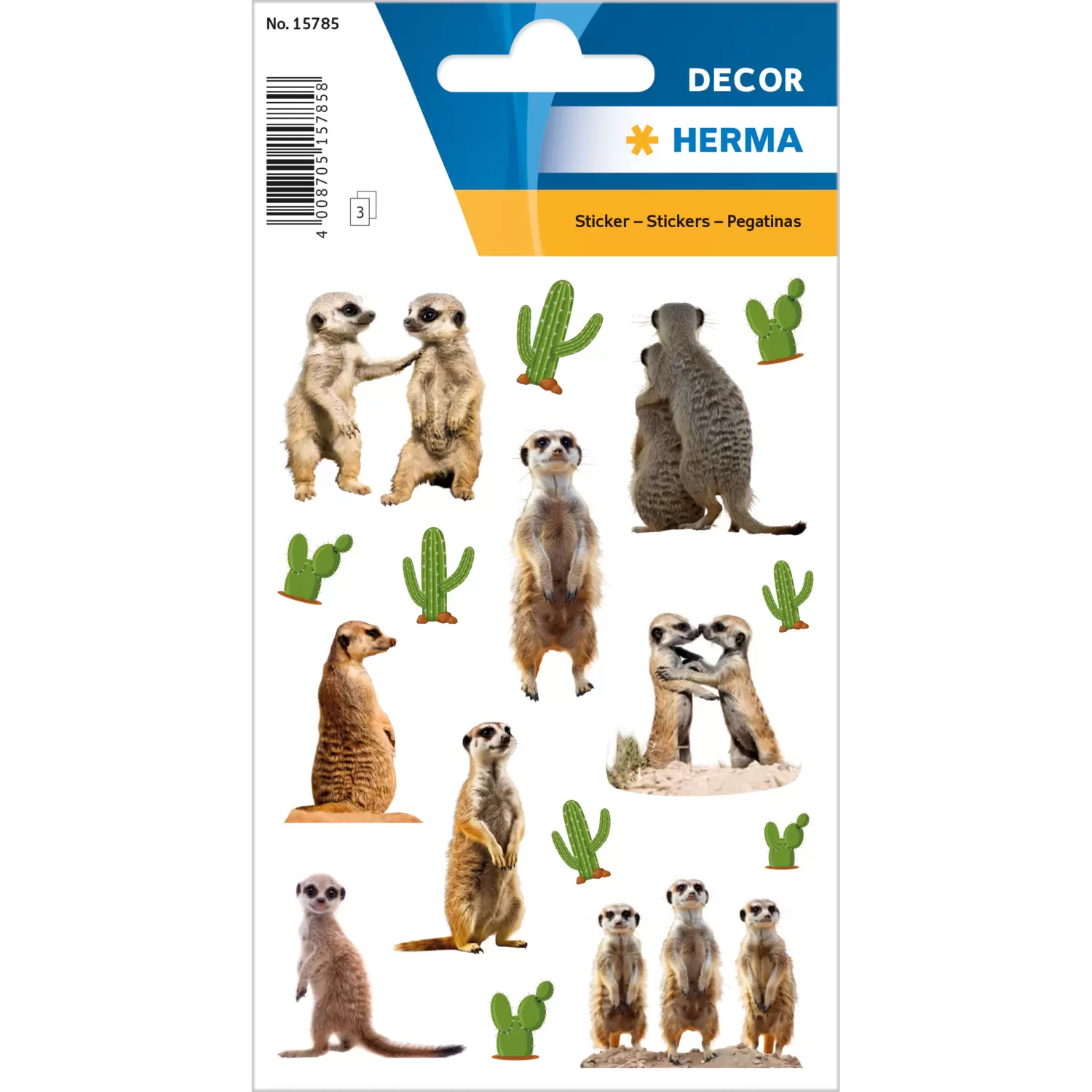 Aan deze schitterende stickers met charmante stokstaartjesmotieven beleven dierenliefhebbers en iedereen die deze beweeglijke savannebewoners leuk vindt dag in, dag uit veel plezier. Op de acht hoogwaardige stickers zie je stokstaartjes in hun grappigste poses en laten daardoor het hart van elke dierenvriend sneller kloppen. De set wordt aangevuld met acht cactus-motieven, een perfecte finishing touch van de exotische sfeer. Om te sparen en te ruilen of voor het verfraaien van vriendschapsboekjes, plakboeken of wenskaarten – deze schattige stickers zijn een echte blikvanger. Als decoratief highlight in de kinderkamer of als kleine verrassing voor vrienden zorgen de stokstaartjes-stickers altijd voor een glimlach en een beetje vrolijkheid. Een beestachtig-vrolijk detail dat een verrijking vormt van elk creatief project.