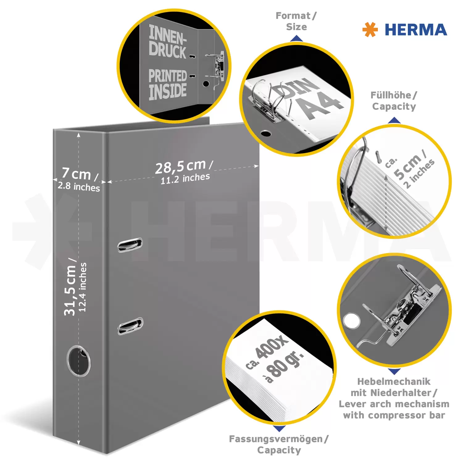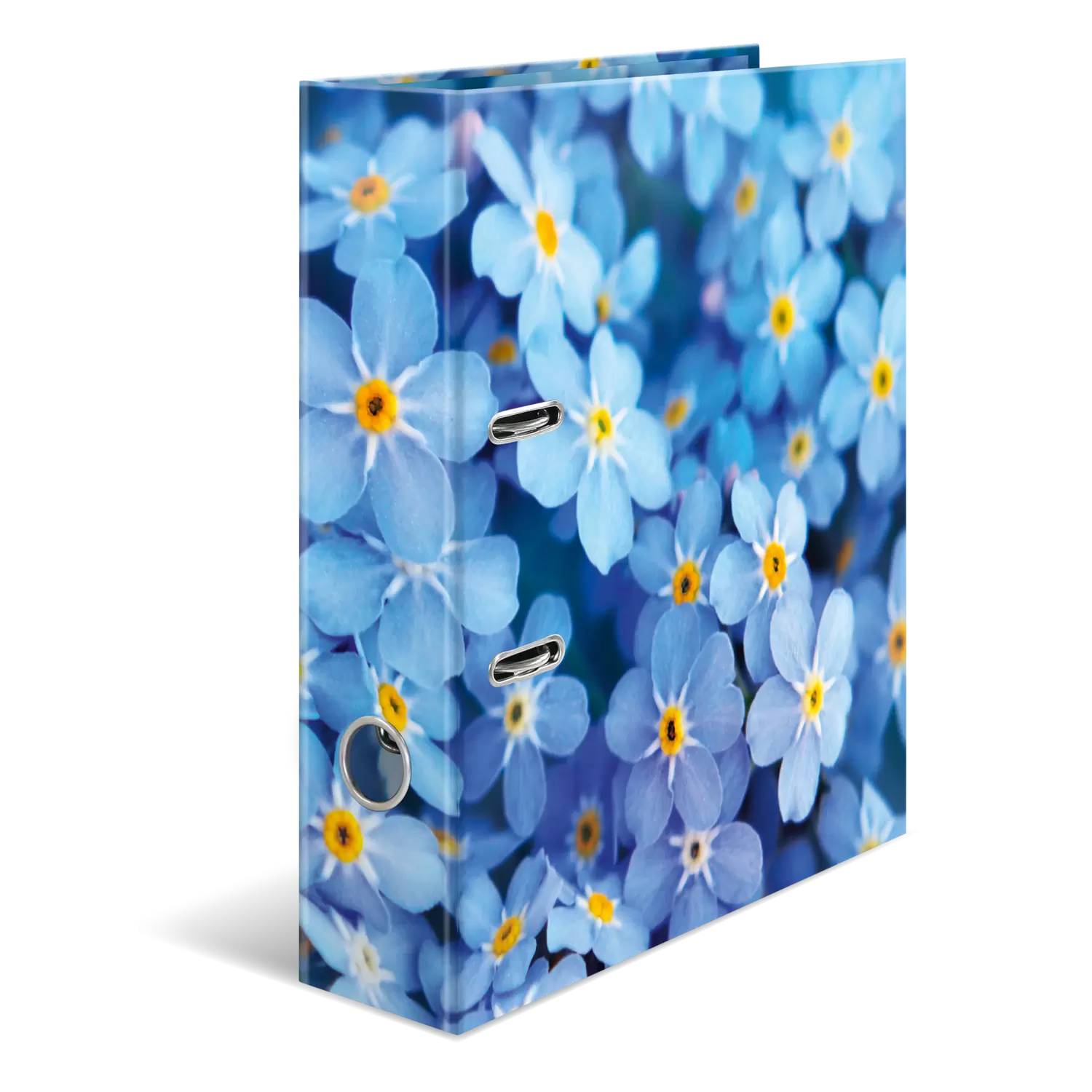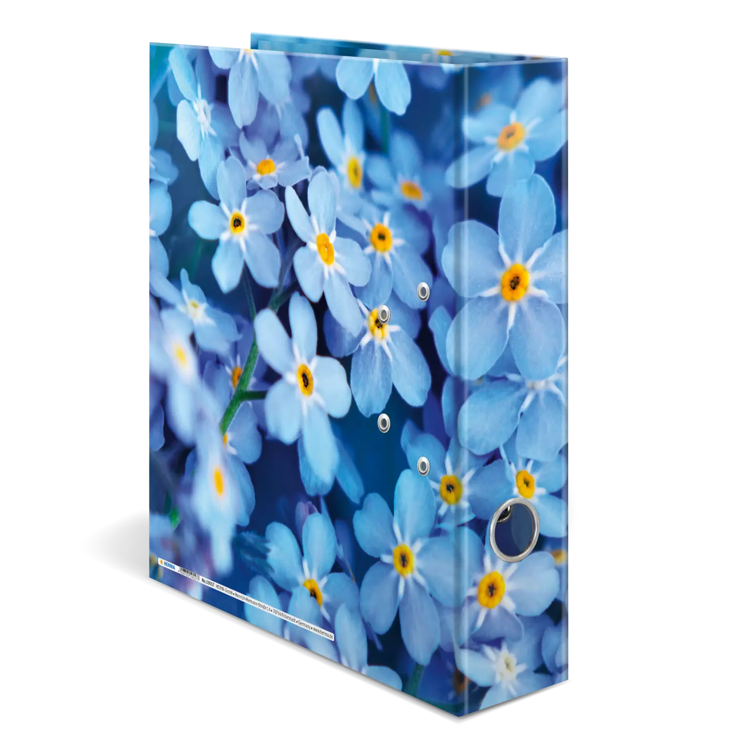 Met de HERMA thema-ordner in het design Blue Flowers uit de serie 'Flowers' haalt u de kleurenpracht van de bloemenwereld in huis, kantoor of school. Bloemen zijn niet voor niets de koninginnen van de flora: altijd al hebben ze ons gefascineerd. Ze worden omgeven door een zweem van gratie en bekoorlijkheid, waarover alleen florale schoonheden beschikken. Elke soort heeft zijn eigen kleuren, geur en aura, delicaat of sterk, discreet of uitbundig, altijd bijzonder en uniek: een cadeautje vol van kleurrijke diversiteit, een genot voor de zintuigen. Een bloemenzee van vergeet-me-nietjes in zachtblauw, een lust voor het oog en de ziel. Het speciale hefboommechanisme met metalen klem zorgt ervoor dat de inhoud van de ordner netjes en stevig bij elkaar wordt gehouden. De brede rug garandeert dat de ordner stevig staat in de kast en voldoende plek biedt voor talloze documenten in formaten tot DIN A4.