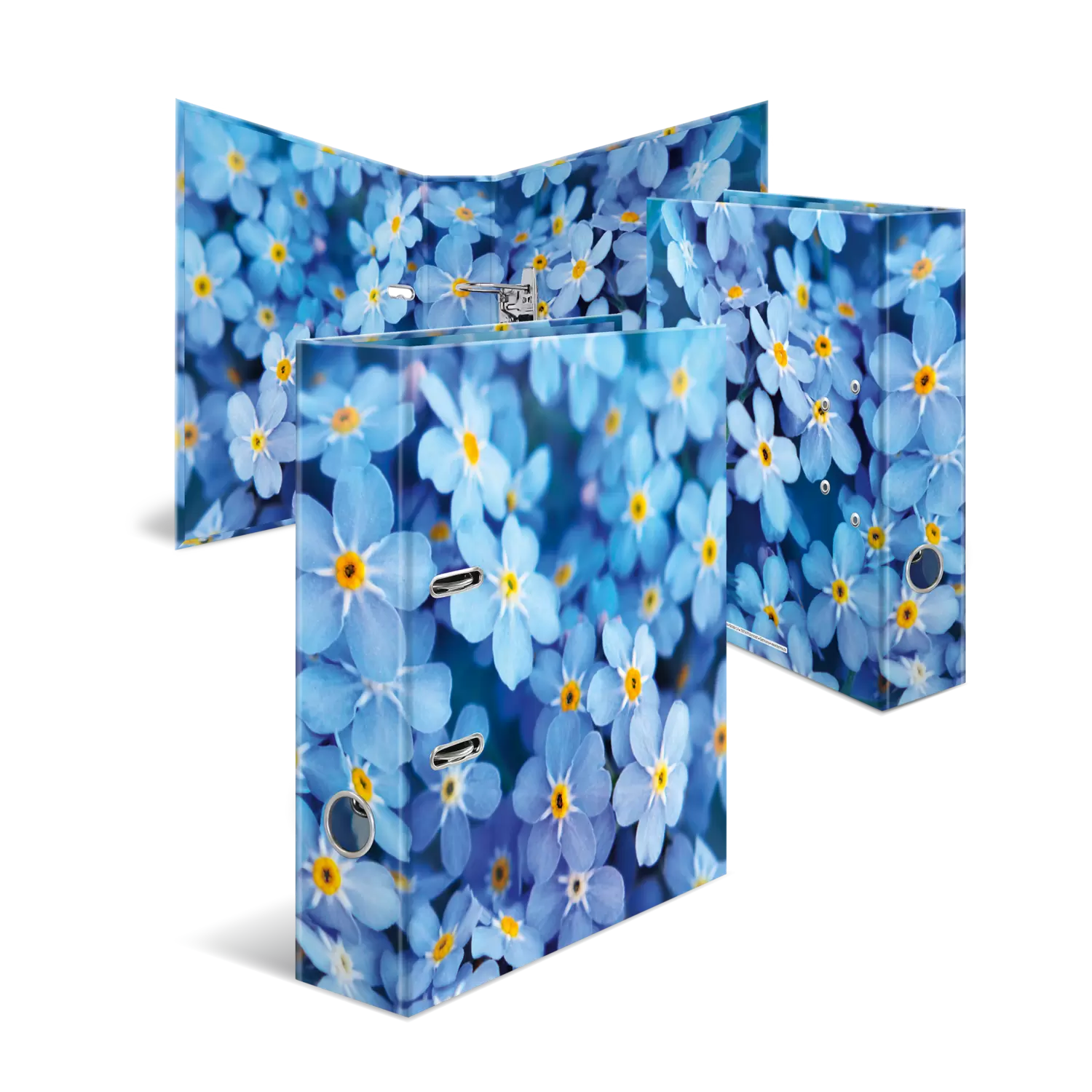 • Prachtige thema-ordner in het design Blue Flowers, van buiten en van binnen volvlaks bedrukt