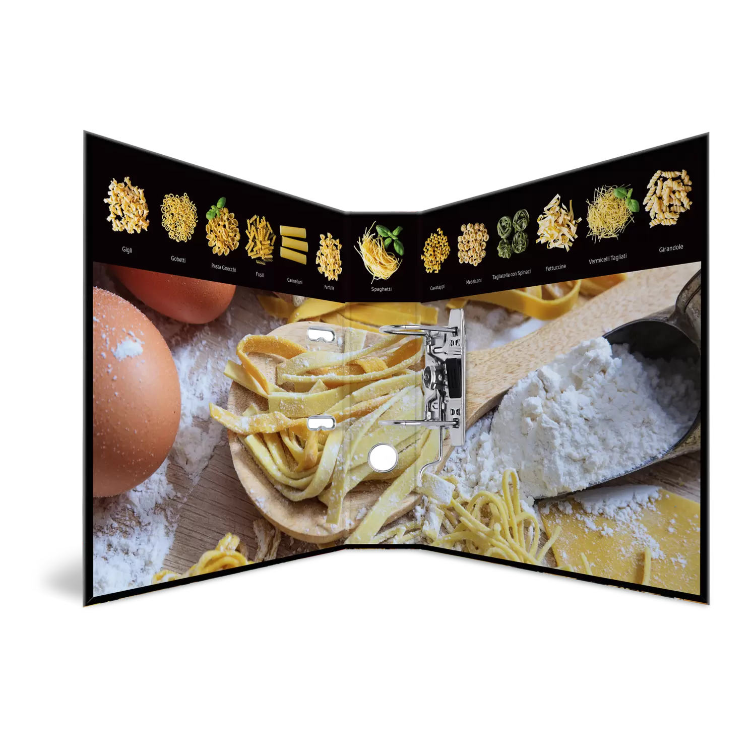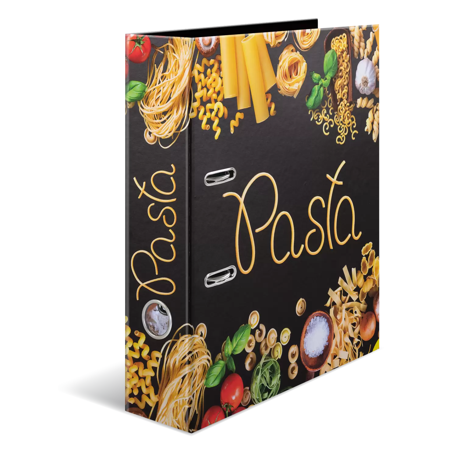 Pasta la Vista, baby! De serie thema-ordners ‘Flavors’ van HERMA neemt je mee op een culinaire reis van de buitencategorie: een lust voor het oog en je gevoel voor orde. Het extra pluspunt: de stijlvolle afwerking, die van de ordner een absoluut high-end product maakt. Visueel en culinair genieten op het hoogste niveau. Met de HERMA thema-ordner ‘Pasta’ haal je de veelzijdigheid van de meest populaire pastaproducten in huis of naar kantoor! Spaghetti, farfalle en tagliatelle behoren tot de meest bekende pastasoorten, maar ken je ook girandole, gobetti en cavatappi? Ontdek nieuwe culinaire mogelijkheden, pasta-genot deluxe! Pasta past immers altijd.