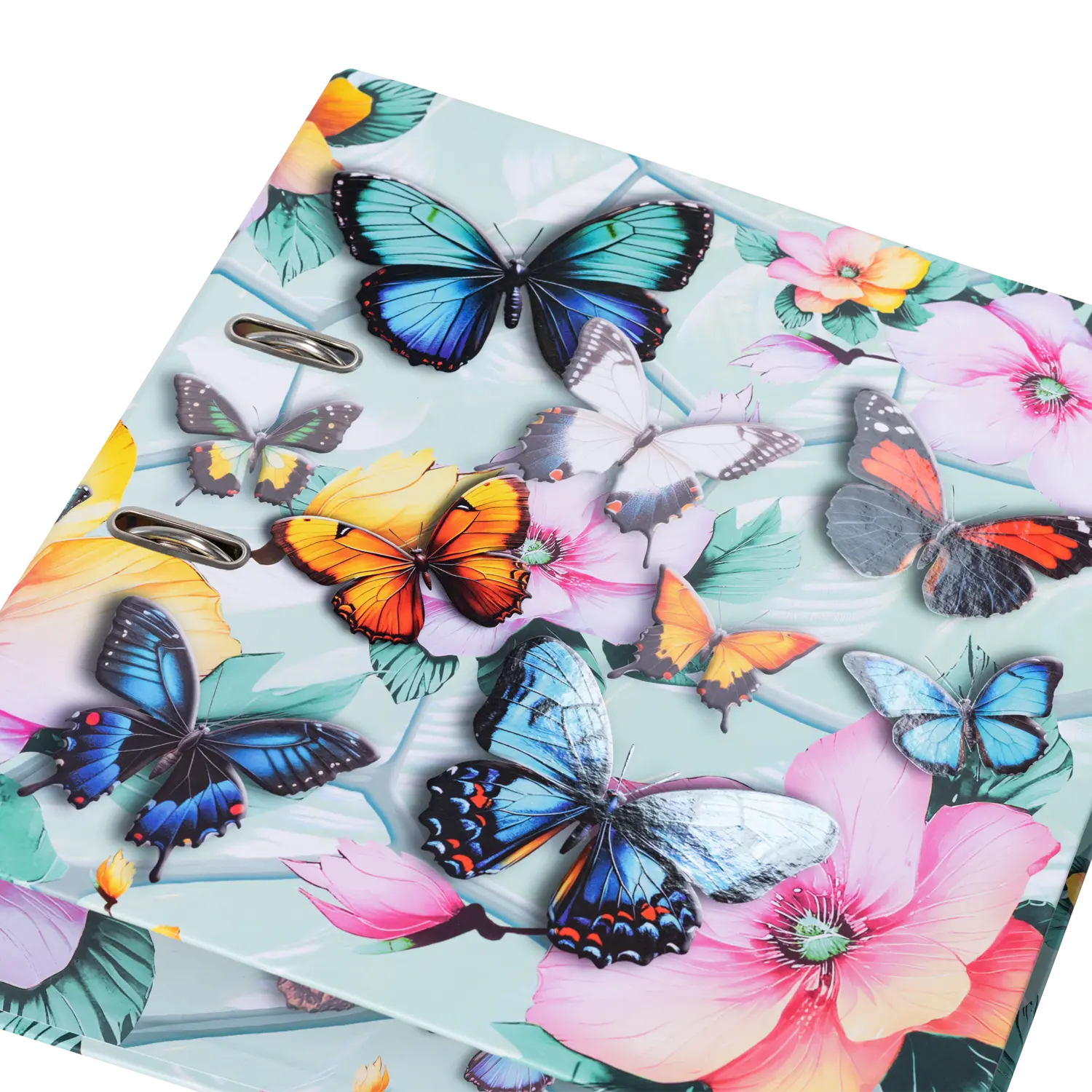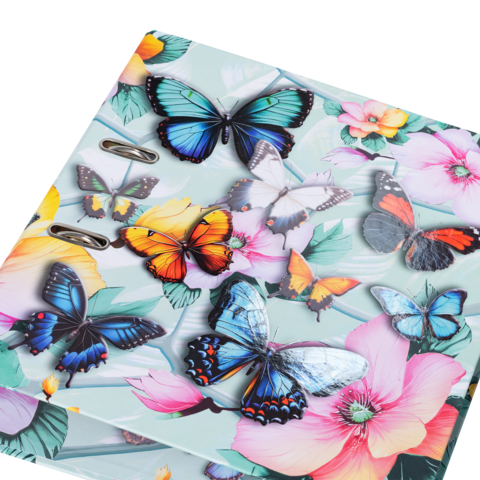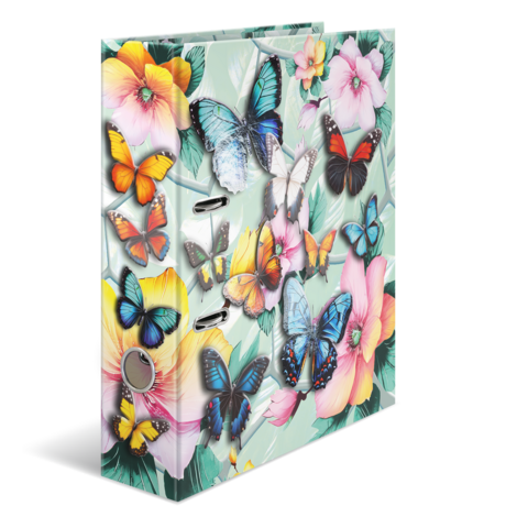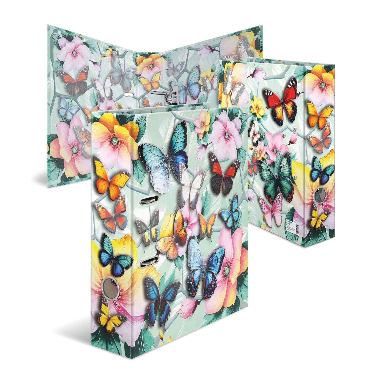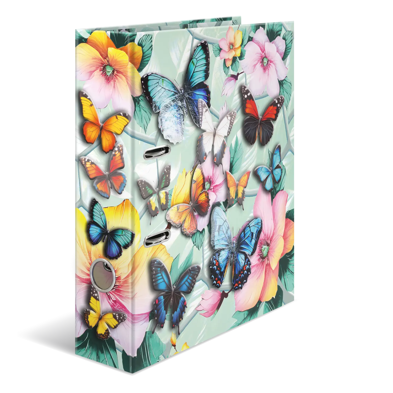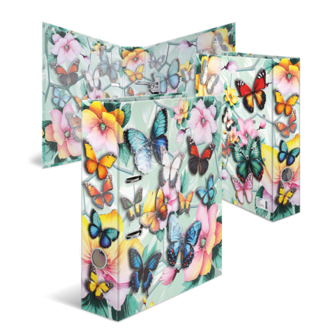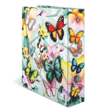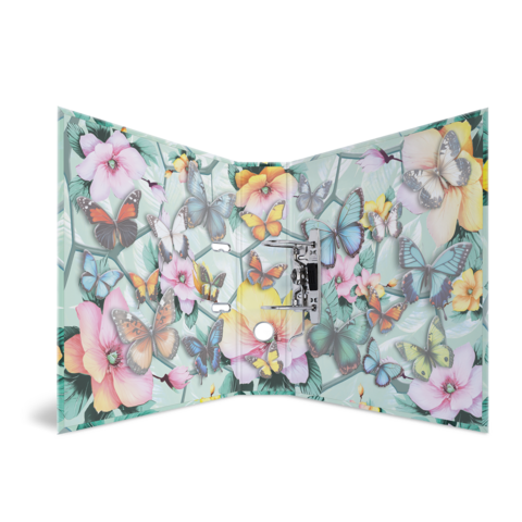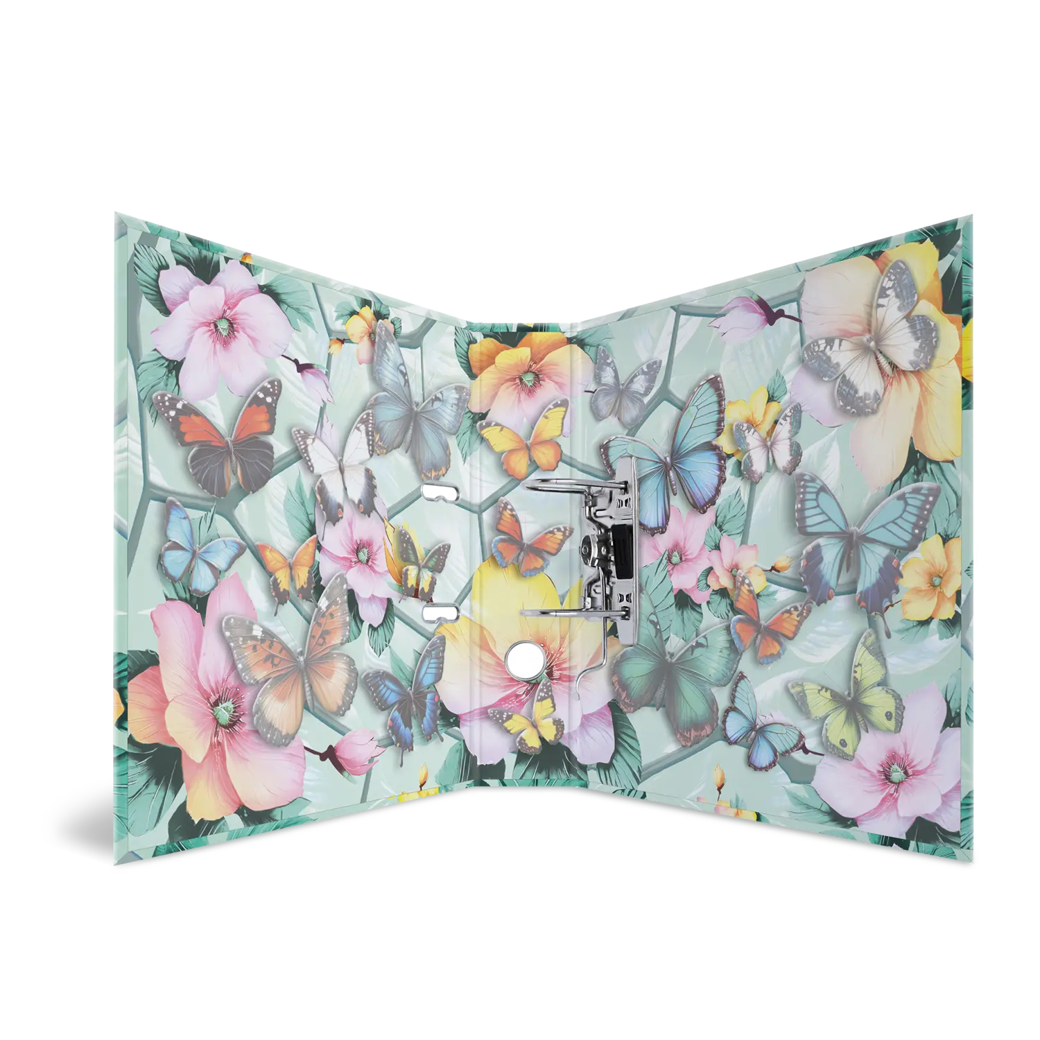 Welkom in de droomtuin: delicate bloemen gecombineerd met elegante vlinders in prachtige pastelkleuren. Deze Motiefordner is met veel liefde en oog voor detail een absolute blikvanger. De filigraan vlinders op de buitenkant van de map komen bijna tot leven dankzij de heldere kleuren en de glanzende folieafwerking. Van stralend blauw tot zonnig geel en zachtroze. hier gaat het hart van elke natuurliefhebber sneller kloppen. De map van stevig karton is met hoogwaardige afwerking uitgevoerd, met bedrukking aan de binnenkant en een stevig hefboommechaniek. Het garandeert een optimale opslag van documenten en transparante folies voor optimale orde thuis, op school, op de universiteit of op kantoor. Een echte blikvanger op de plank en op het bureau.