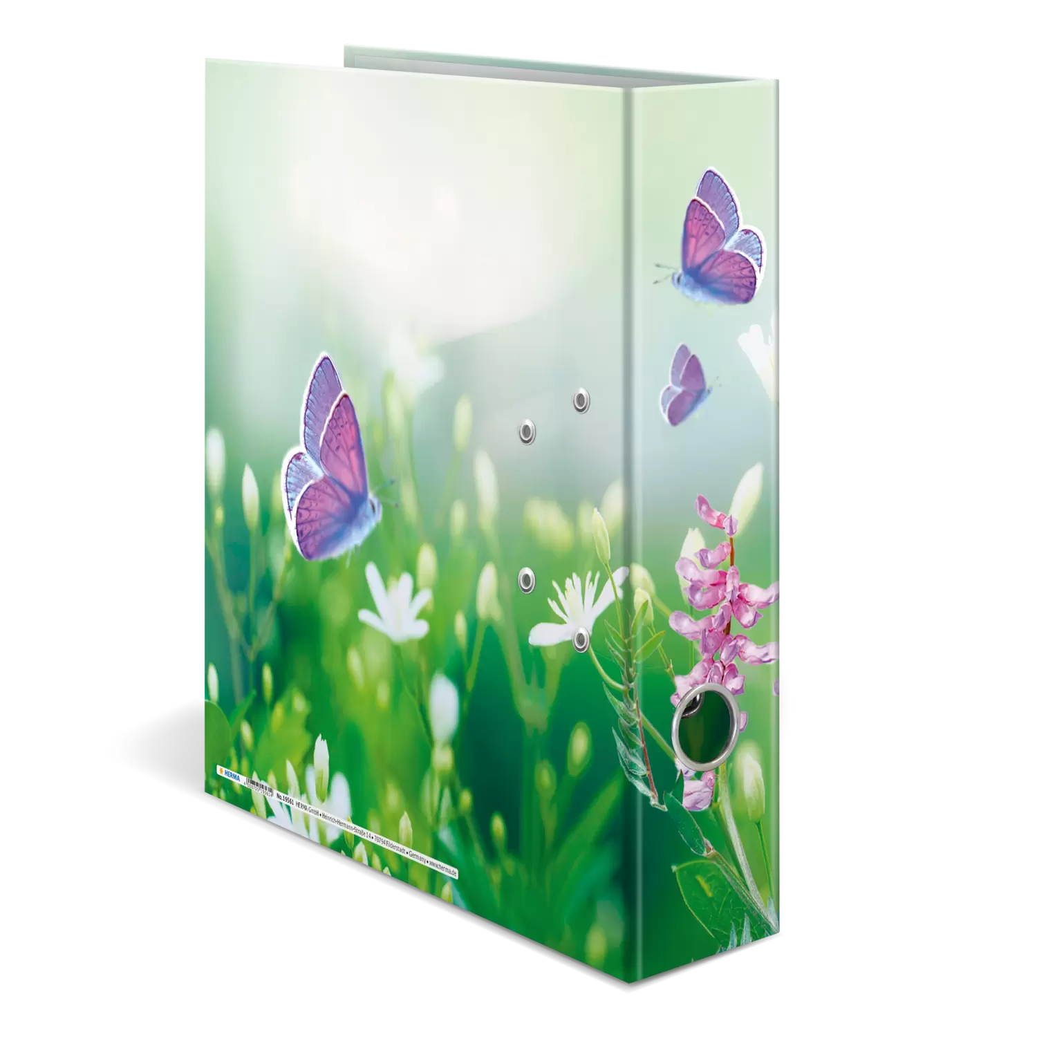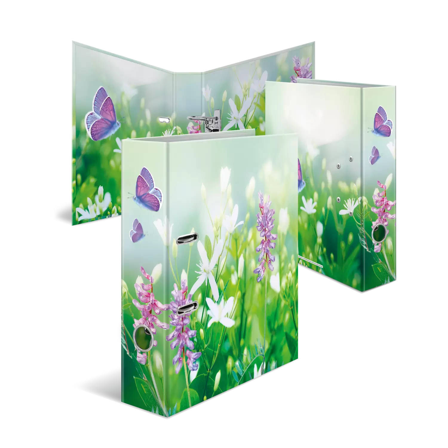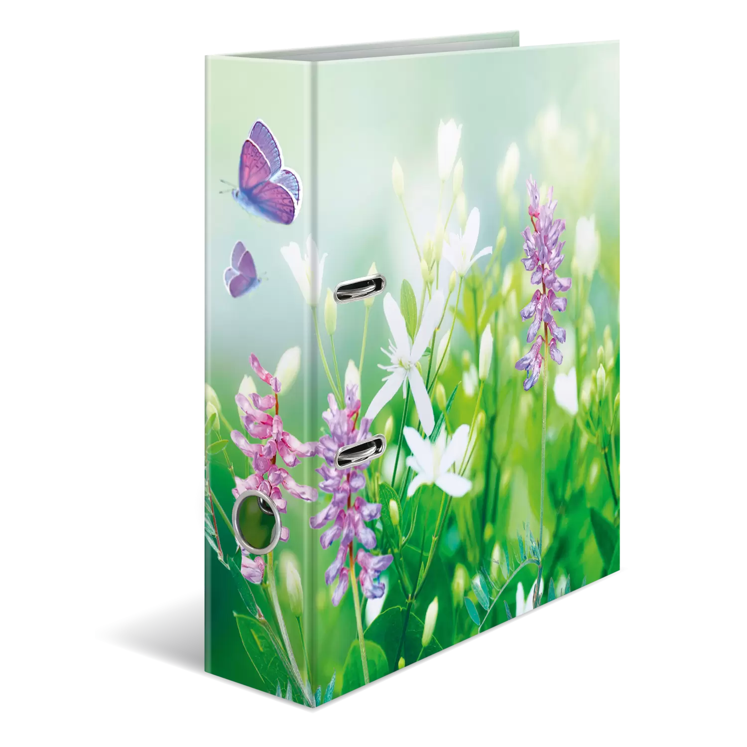 Met de HERMA thema-ordner in het design Wild Flowers uit de serie 'Flowers' haalt u de kleurenpracht van de bloemenwereld in huis, kantoor of school. Bloemen zijn niet voor niets de koninginnen van de flora: altijd al hebben ze ons gefascineerd. Ze worden omgeven door een zweem van gratie en bekoorlijkheid, waarover alleen florale schoonheden beschikken. Elke soort heeft zijn eigen kleuren, geur en aura, delicaat of sterk, discreet of uitbundig, altijd bijzonder en uniek: een cadeautje vol van kleurrijke diversiteit, een genot voor de zintuigen. Een kleurrijke zomerweide, een lust voor het oog en de ziel. Het speciale hefboommechanisme met metalen klem zorgt ervoor dat de inhoud van de ordner netjes en stevig bij elkaar wordt gehouden. De brede rug garandeert dat de ordner stevig staat in de kast en voldoende plek biedt voor talloze documenten in formaten tot DIN A4.