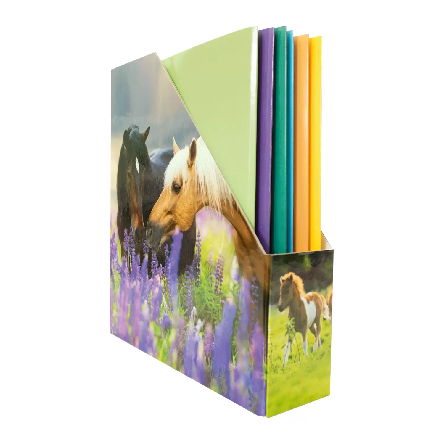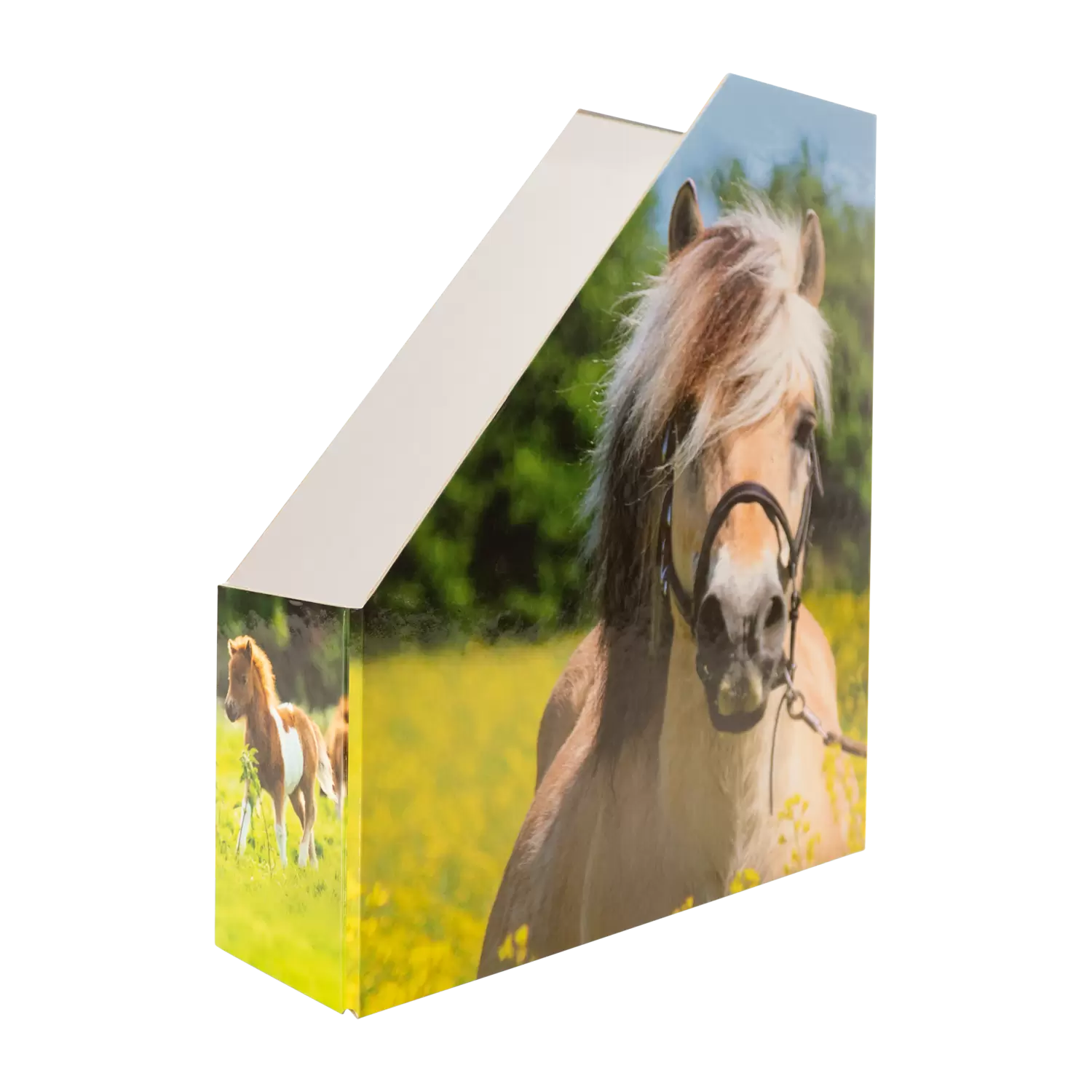 Paardenliefhebbers opgelet! In deze supergaaf ontworpen tijdschriftenhouder, die bedrukt is met geweldige paardenfoto's, berg je tijdschriften, brochures, catalogi, mappen en documenten optimaal op, een sieraad in de kast en alles netjes opgeborgen en altijd bij de hand. De tijdschriftenhouder is optimaal voor tekeningen, schriften en tijdschriften in A4-formaat. Dankzij de oppervlaktecoating is hij bovendien afveegbaar en duurzaam. Praktisch en leuk om te zien, een echte blikvanger. Organiseren gemakkelijk gemaakt. Met HERMA. Ontdek de producten van de populaire paardenserie: verzamelmappen, thema-ordners, schrijfonderleggers, stickers en meer! Geweldig design, in trek bij jong en oud.