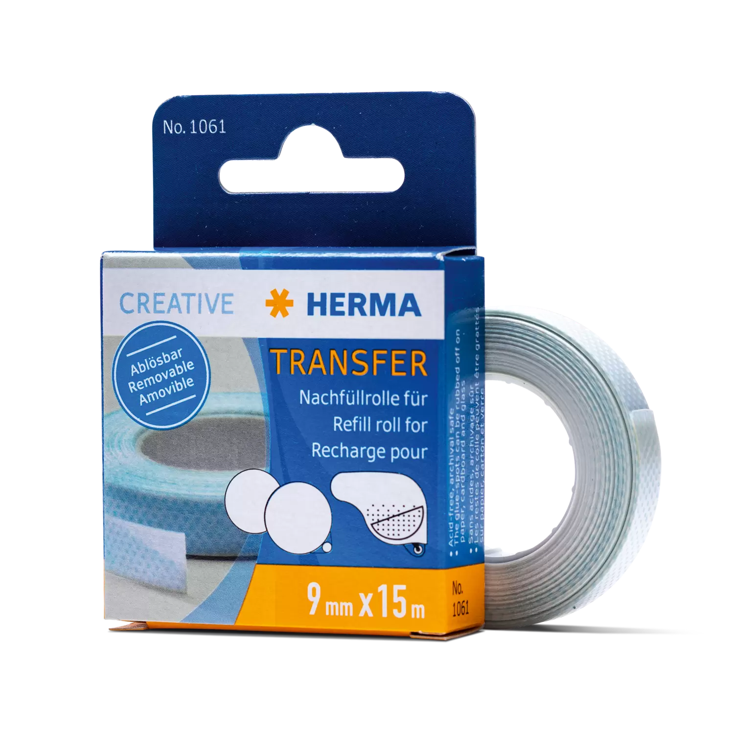 Met de praktische HERMA navulrol voor de lijmrollers Transfer verwijderbaar 1060 (zwart) en 1067 (blauw) is de dispenser nadat de rol op is snel weer klaar voor gebruik. Openen van de dispenser om de nieuwe rol aan te brengen, gaat heel gemakkelijk. Opnieuw vullen en weer gebruiken in plaats van vervangen – dat is duurzaam en milieuvriendelijk.
