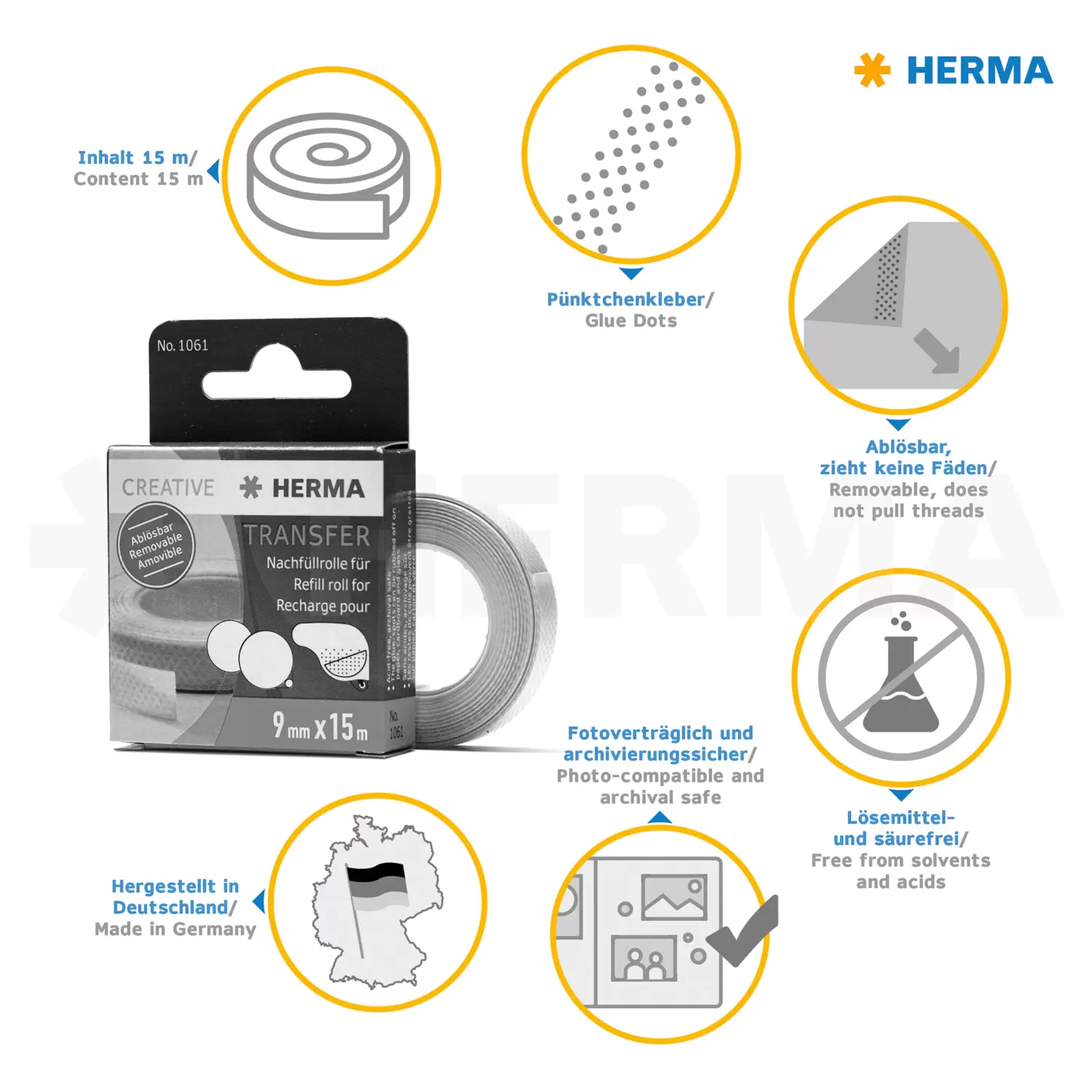 • Navulrol voor HERMA lijmrollers Transfer, verwijderbaar