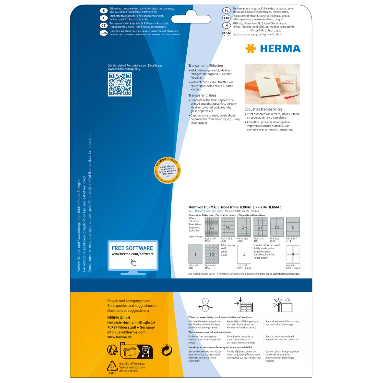 Transparante inkjet-folie-etiketten, A4, 210 x 297 mm, glanzend, permanent hechtend