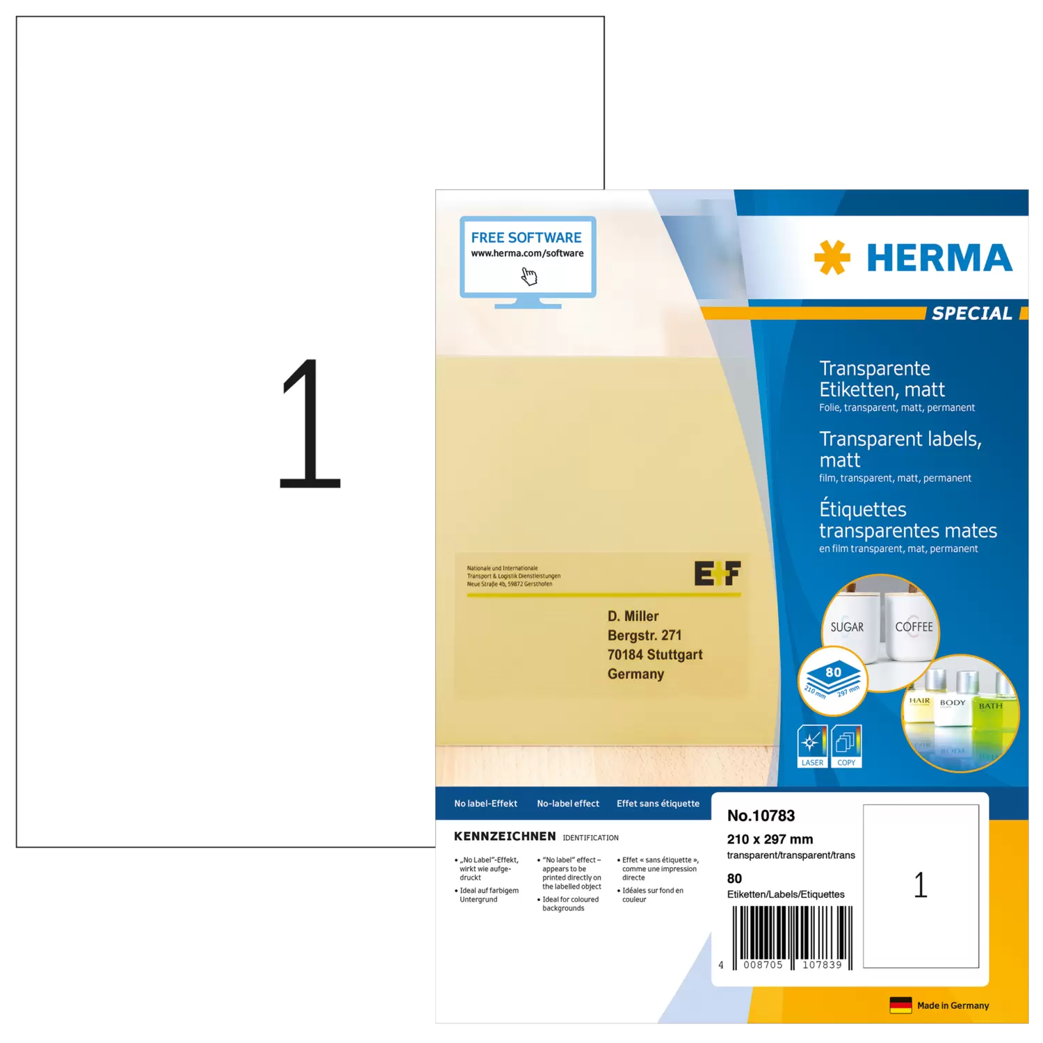 Transparante folie-etiketten mat, A4, 210 x 297 mm, weervast, permanent hechtend