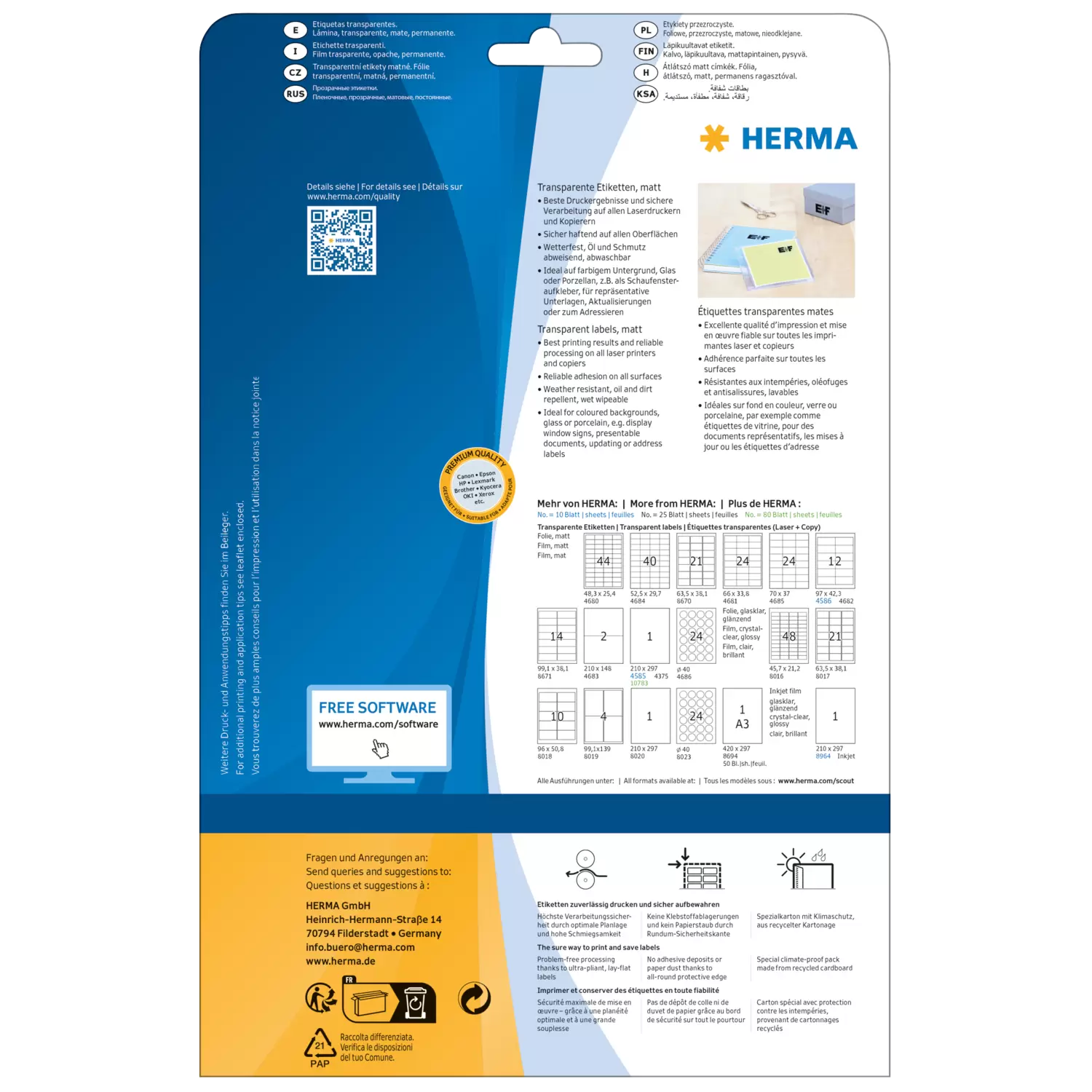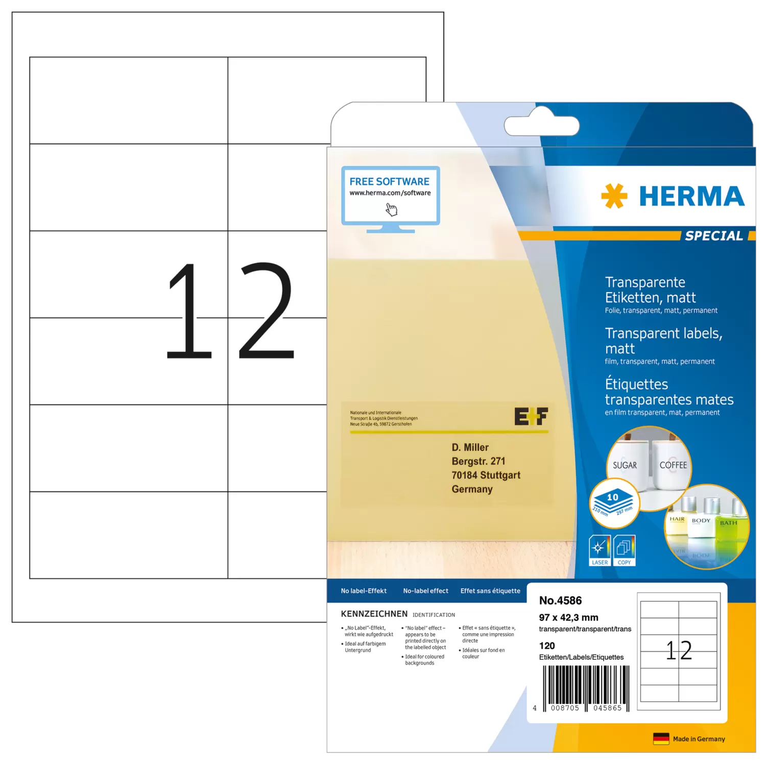 Transparante folie-etiketten mat, A4, 97 x 42,3 mm, weervast, permanent hechtend