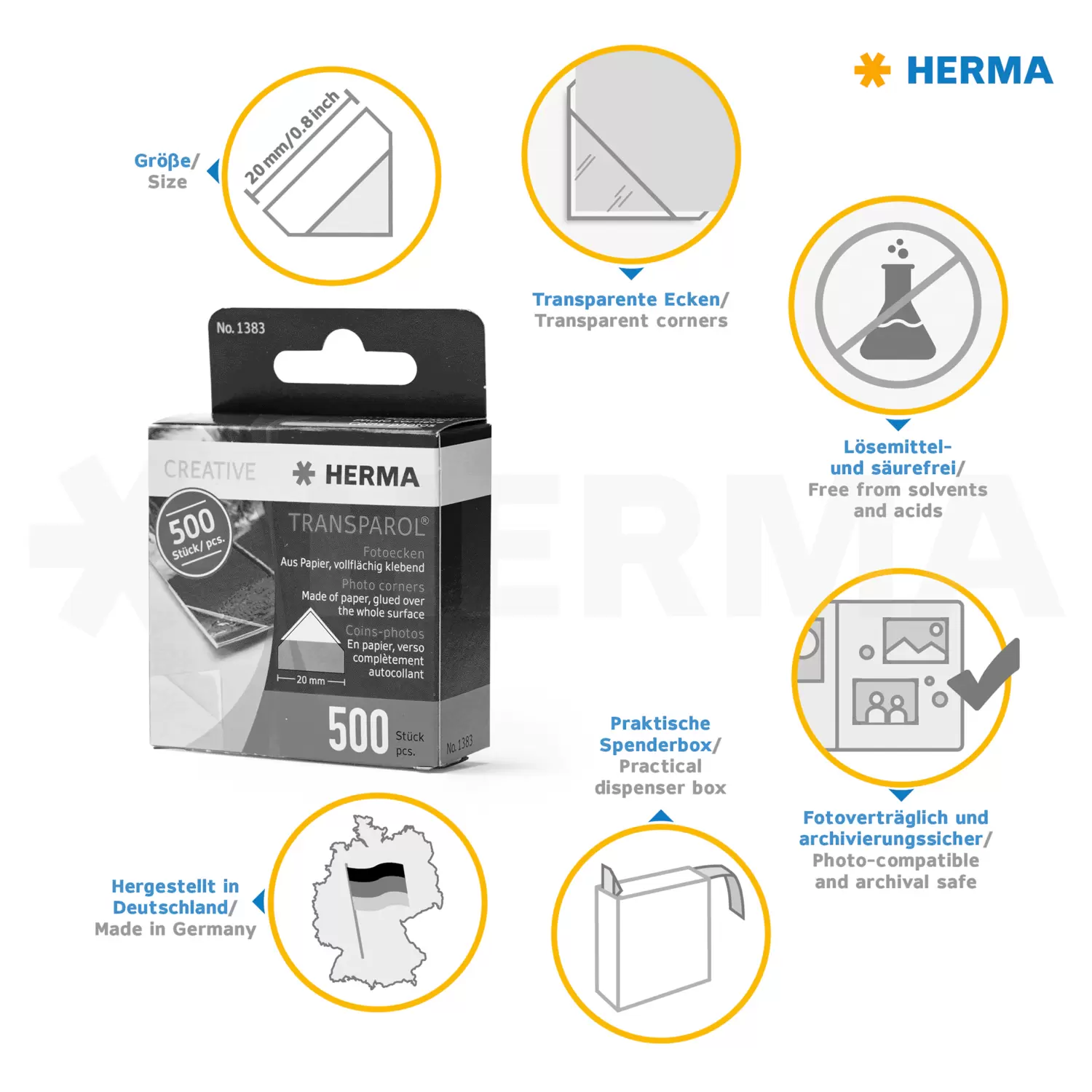 - HERMA fotohoekjes Transparol zelfklevend, met doorzichtig foliehoekje voor het insteken van foto's en ansichtkaarten