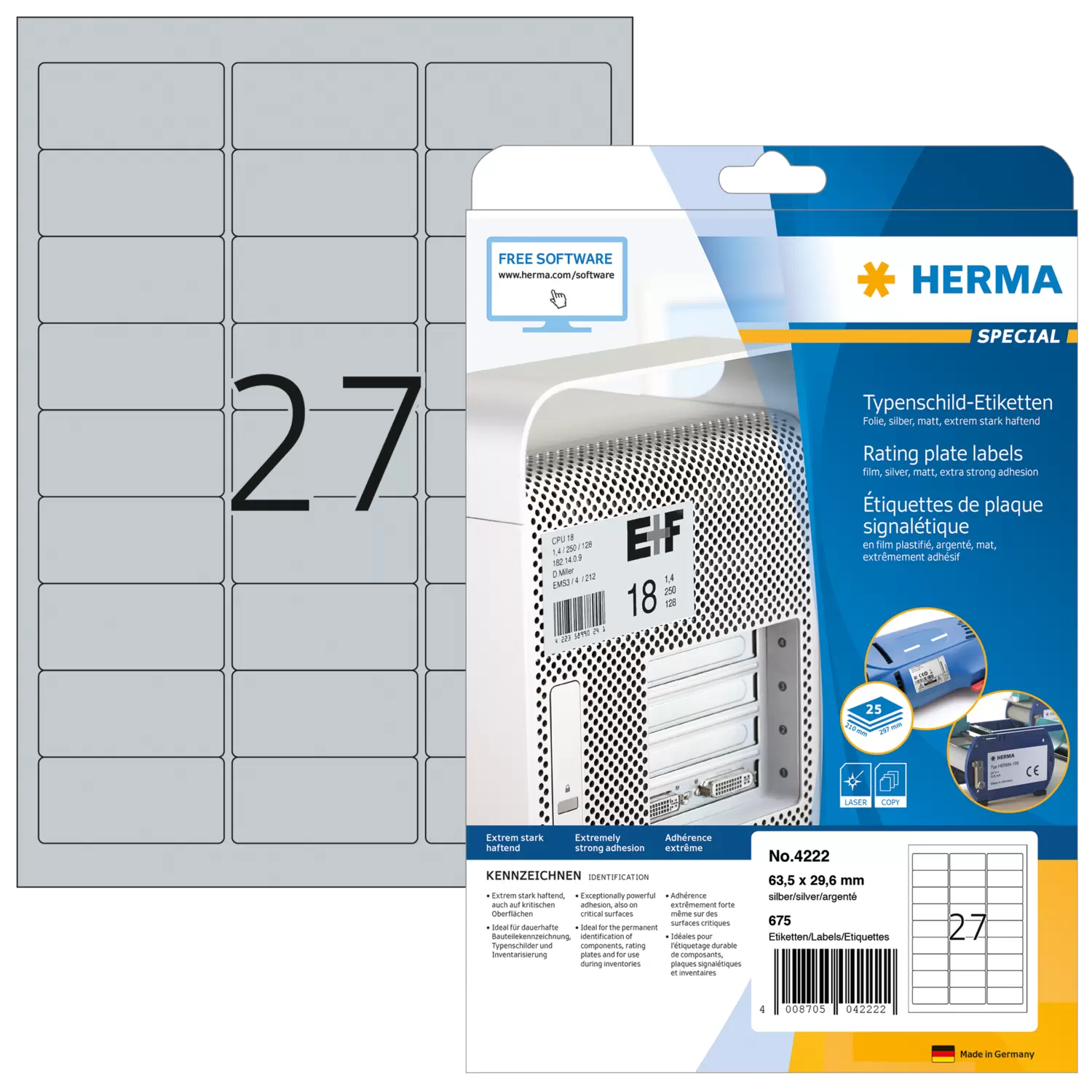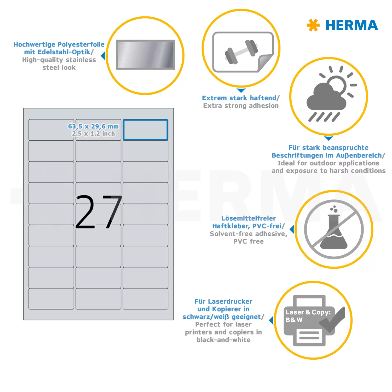 Typeplaatje-etiketten, zilver, A4, 63,5 x 29,6 mm, extreem sterk hechtend, weervast, scheurvast
