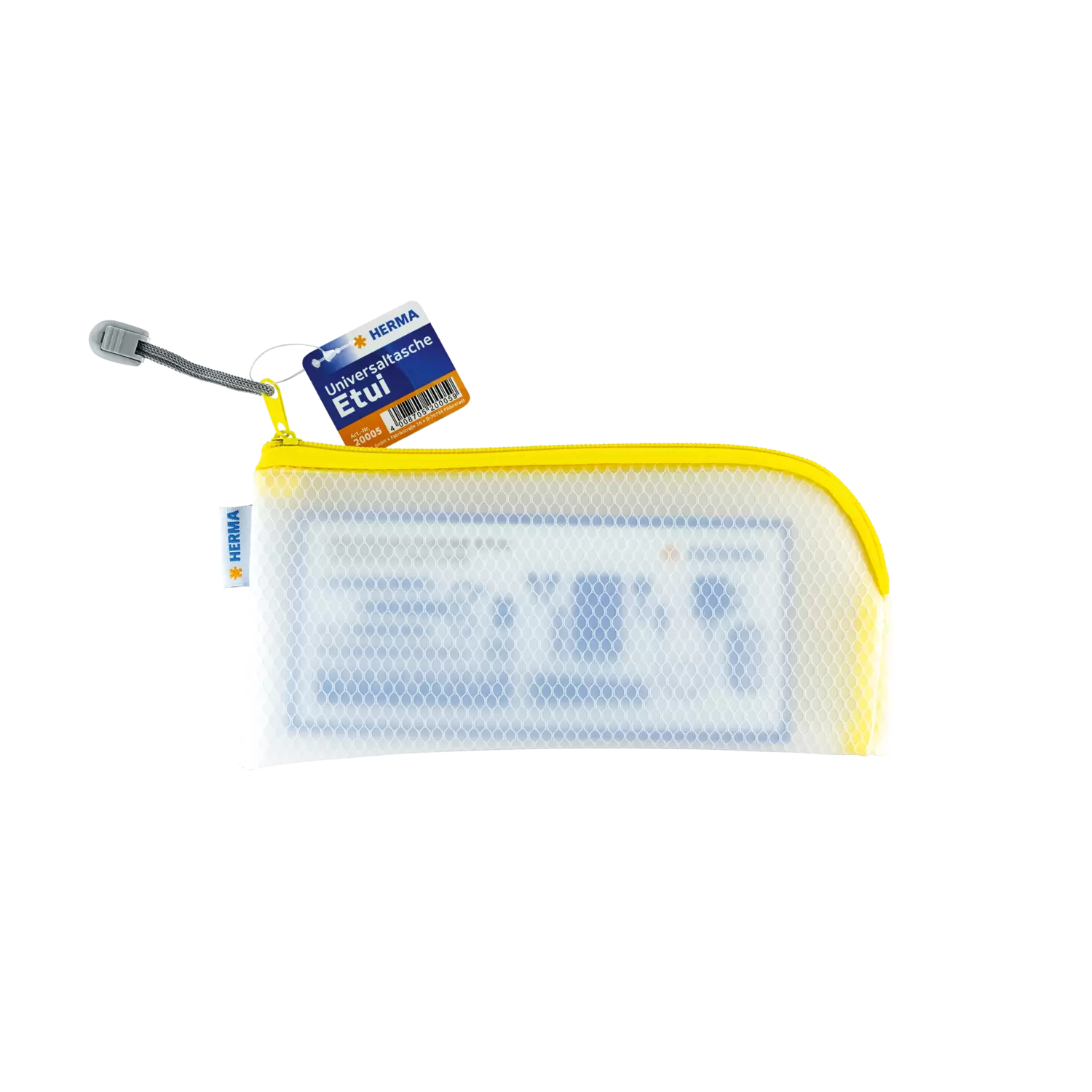 - HERMA universele etui, met praktische ritssluiting, naden met gele rand, 23 x 11 cm.