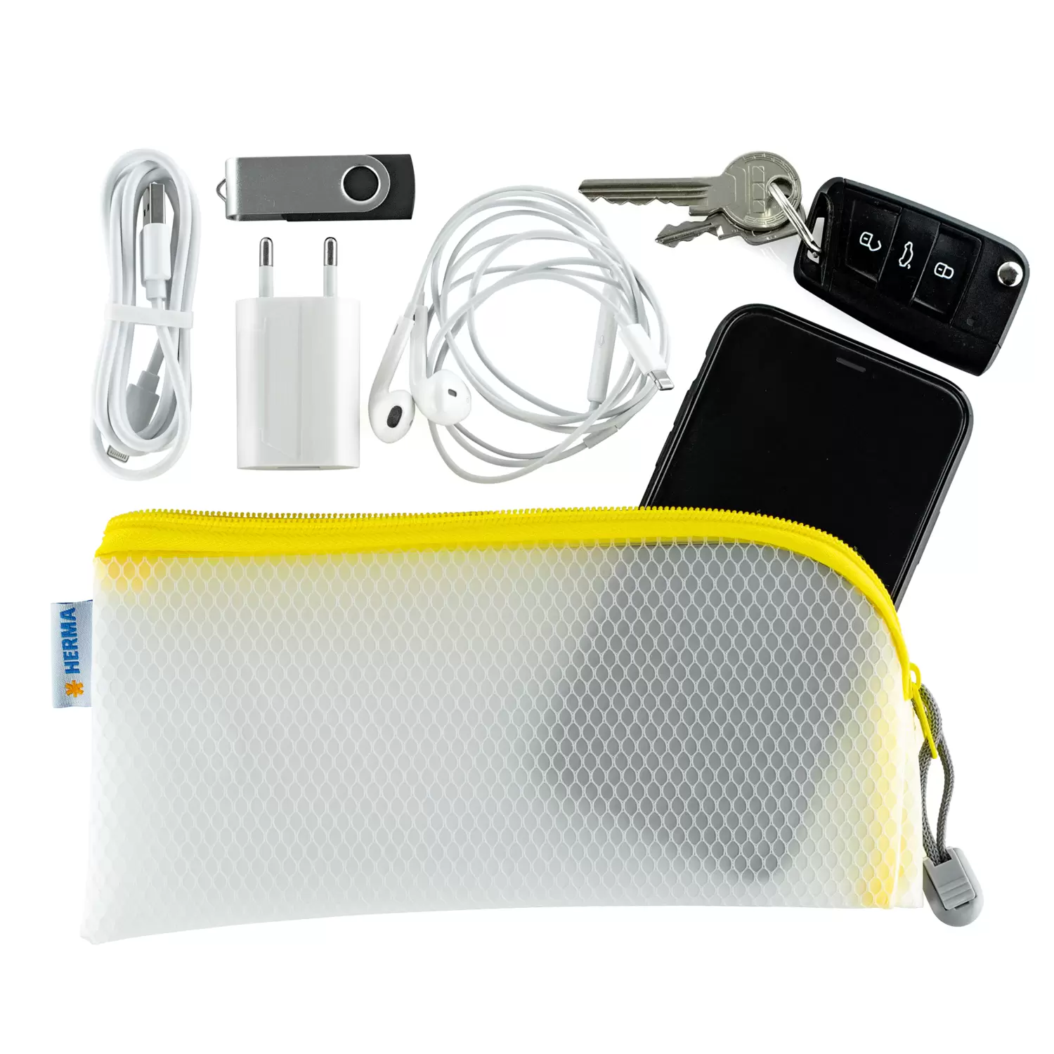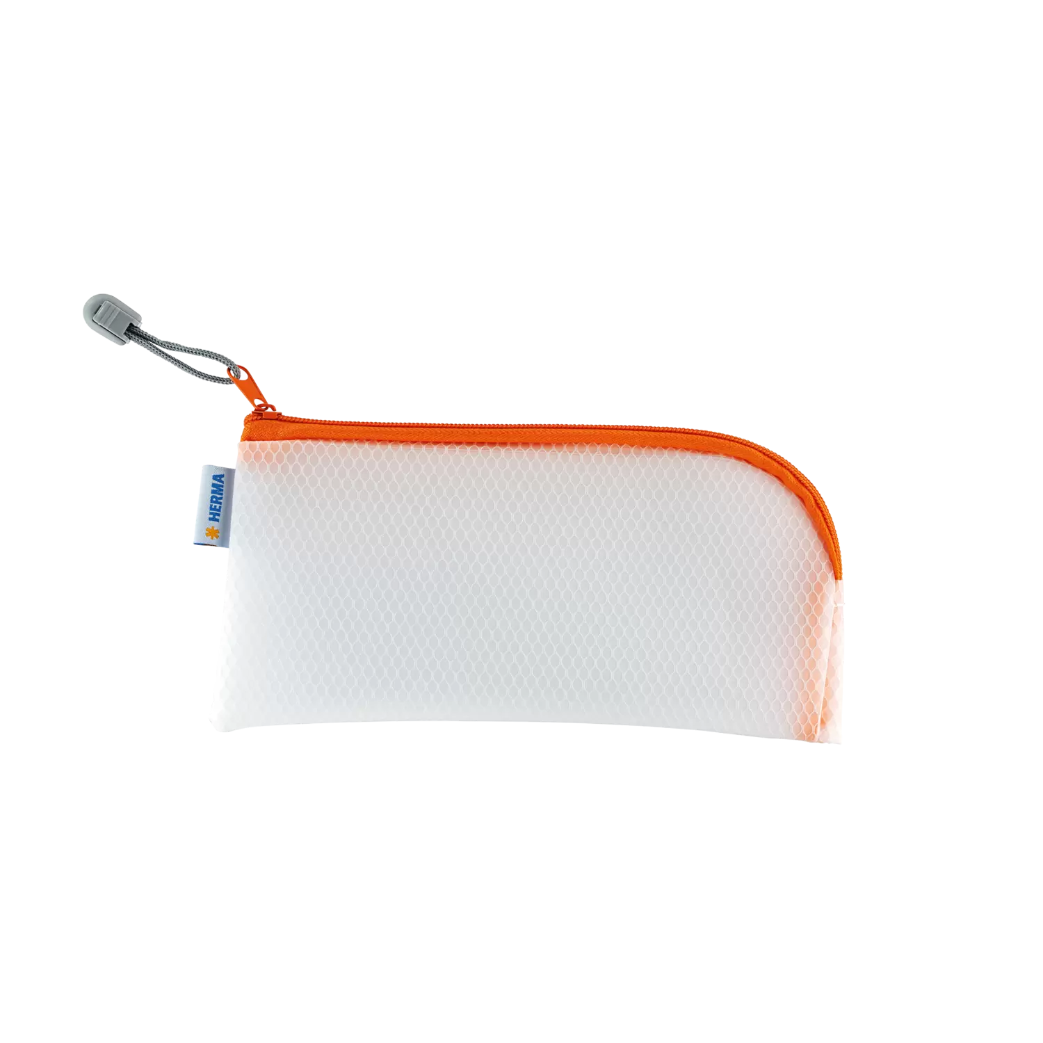 - HERMA universele etui, met praktische ritssluiting, naden met oranje rand, 23 x 11 cm.