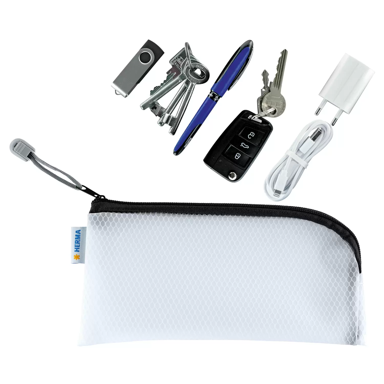 - HERMA universele etui, met praktische ritssluiting, naden met zwart rand, 23 x 11 cm.