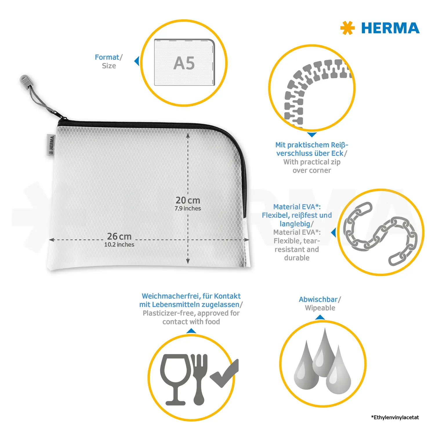 - HERMA universeel mesh-zakje A5, met praktische ritssluiting, naden met groene rand, 26 x 20 cm