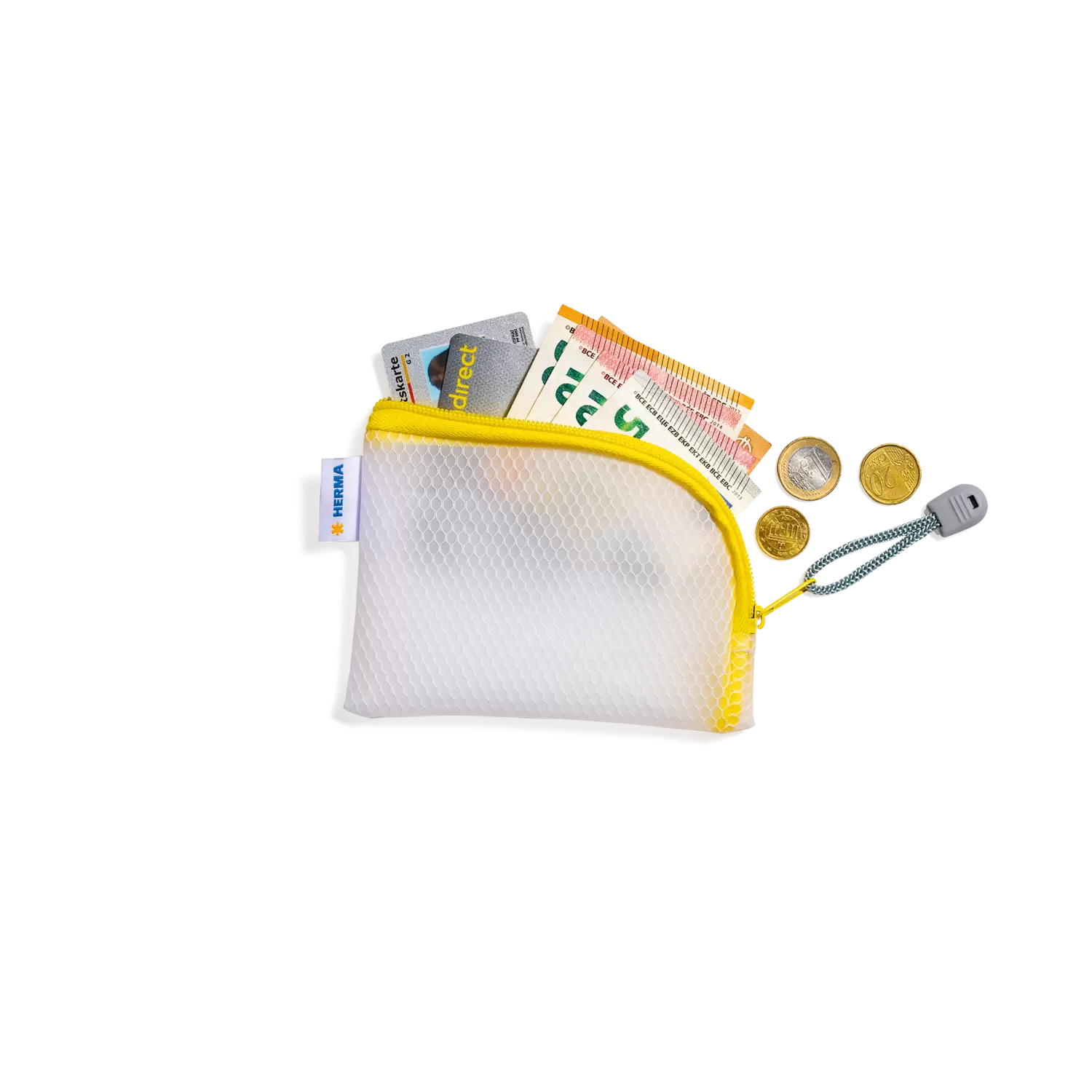 • HERMA universeel mesh-zakje, met praktische ritssluiting, in de maat 14 x 10 cm