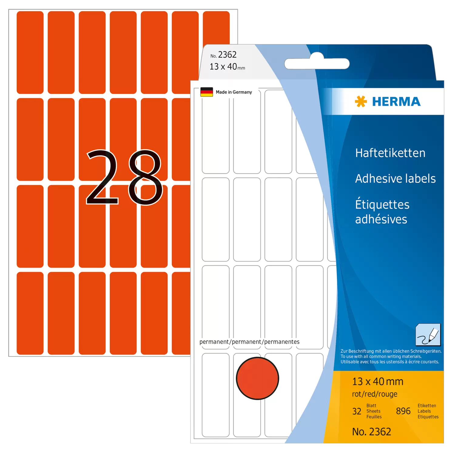 Multipurpose-etiketten, 13 x 40 mm, rood, permanent hechtend, om met de hand te beschrijven