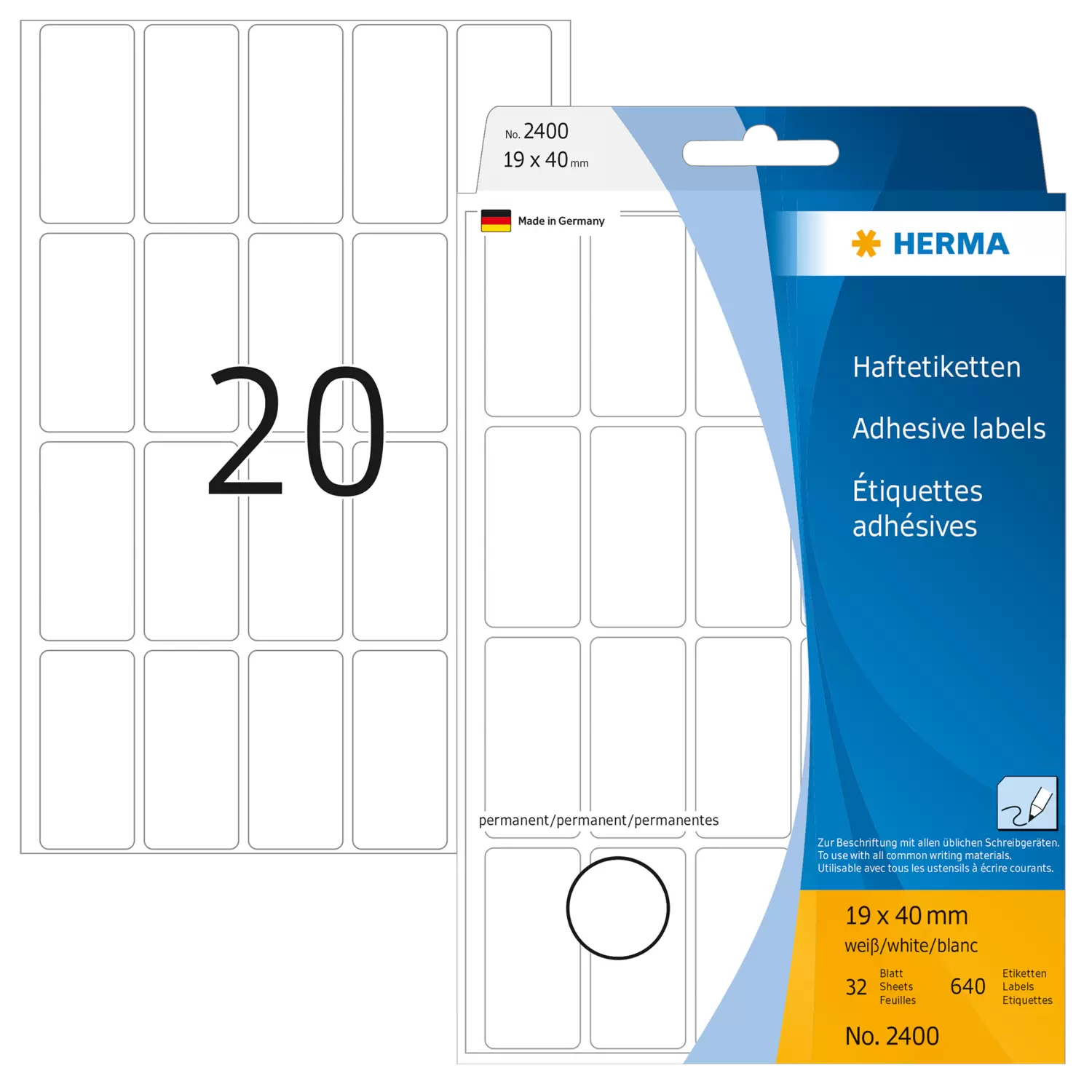 Multipurpose-etiketten, 19 x 40 mm, wit, permanent hechtend, om met de hand te beschrijven