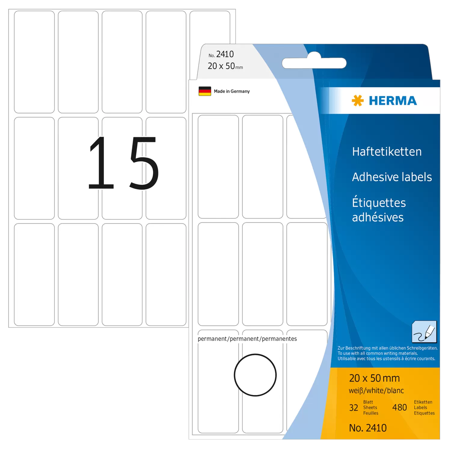 Multipurpose-etiketten, 20 x 50 mm, wit, permanent hechtend, om met de hand te beschrijven