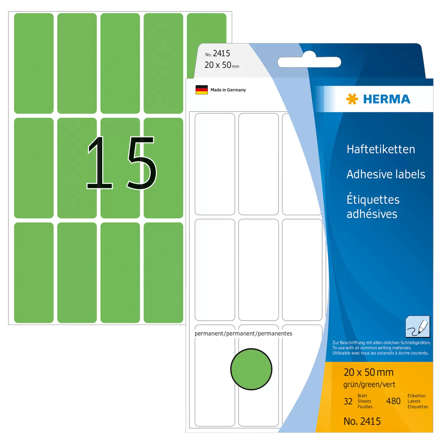 Multipurpose-etiketten, 20 x 50 mm, groen, permanent hechtend, om met de hand te beschrijven