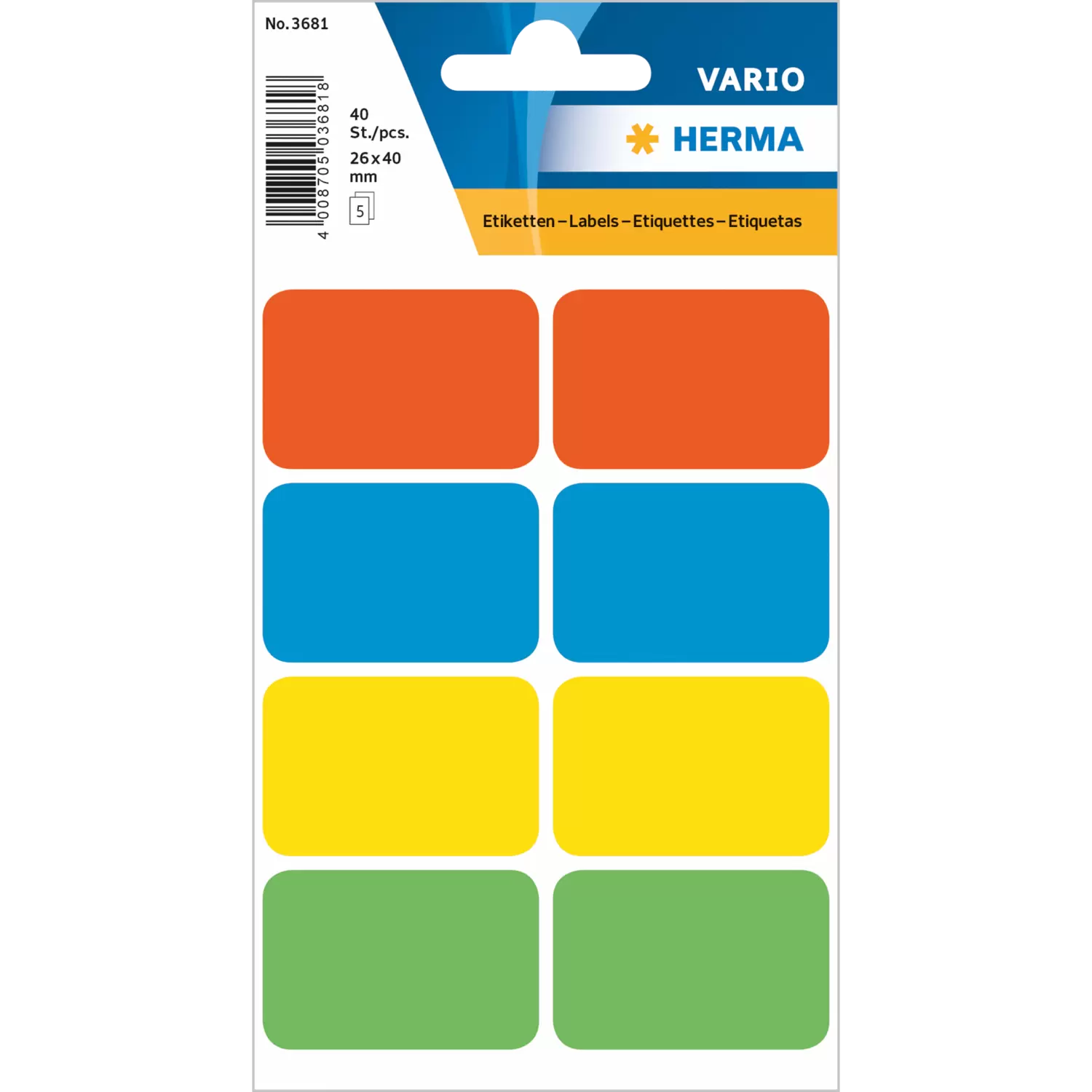Multipurpose-etiketten, 25 x 40 mm, kleuren gesorteerd, permanent hechtend, om met de hand te beschr