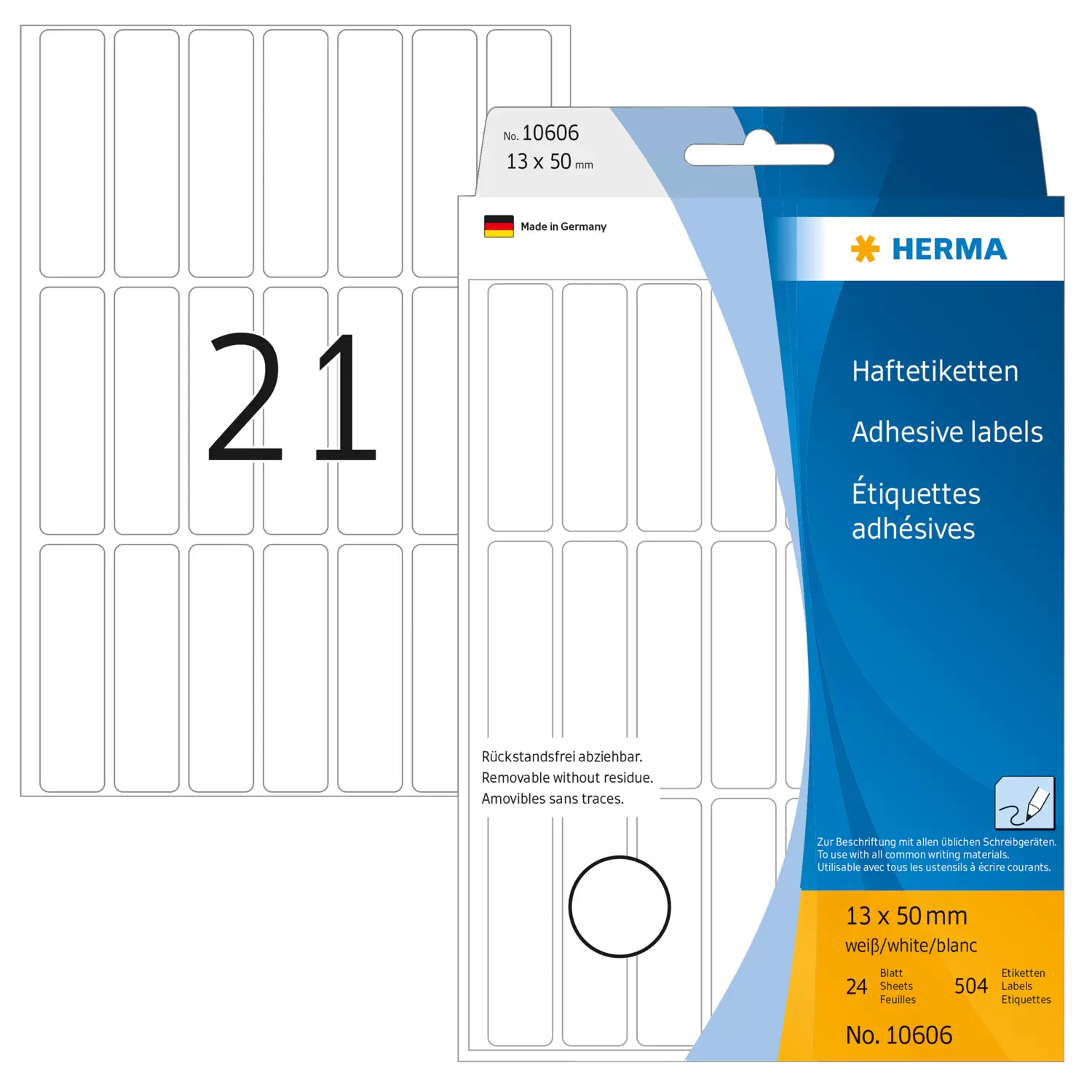 Verwijderbare multipurpose-etiketten 13 x 50 mm, wit, om met de hand te beschrijven
