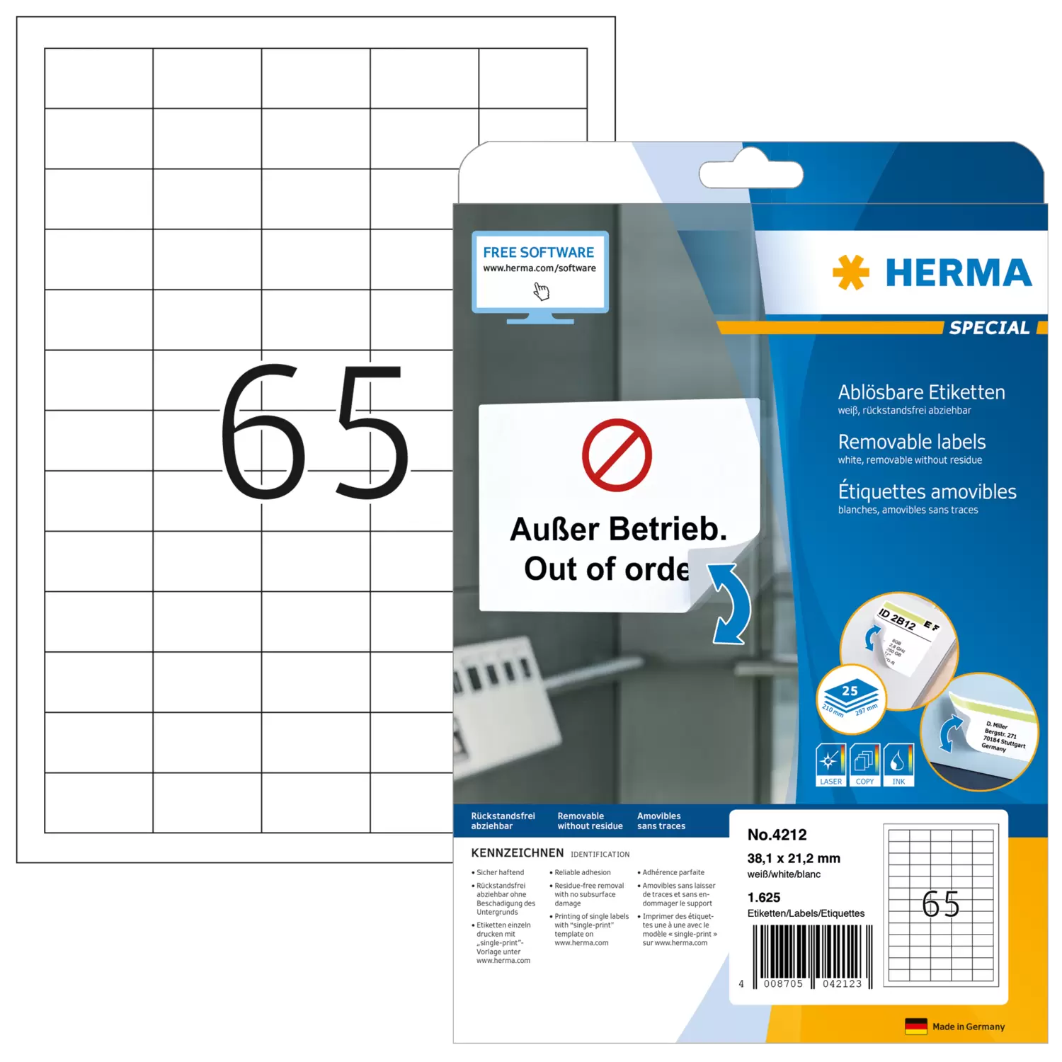 Verwijderbare etiketten zijn zowel geschikt voor inkjet- en laserprinters als voor kopieerapparaten. Met zeer goede afdrukresultatenin zwart en in kleur.