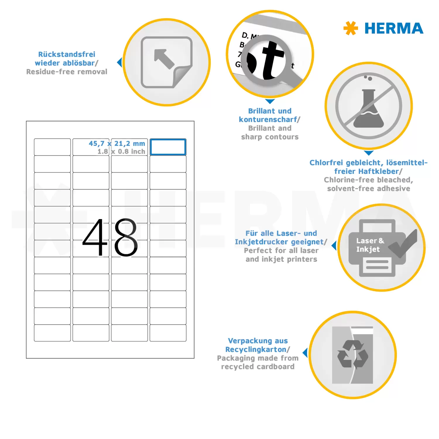 Verwijderbare etiketten, A4, 45,7 x 21,2 mm, wit