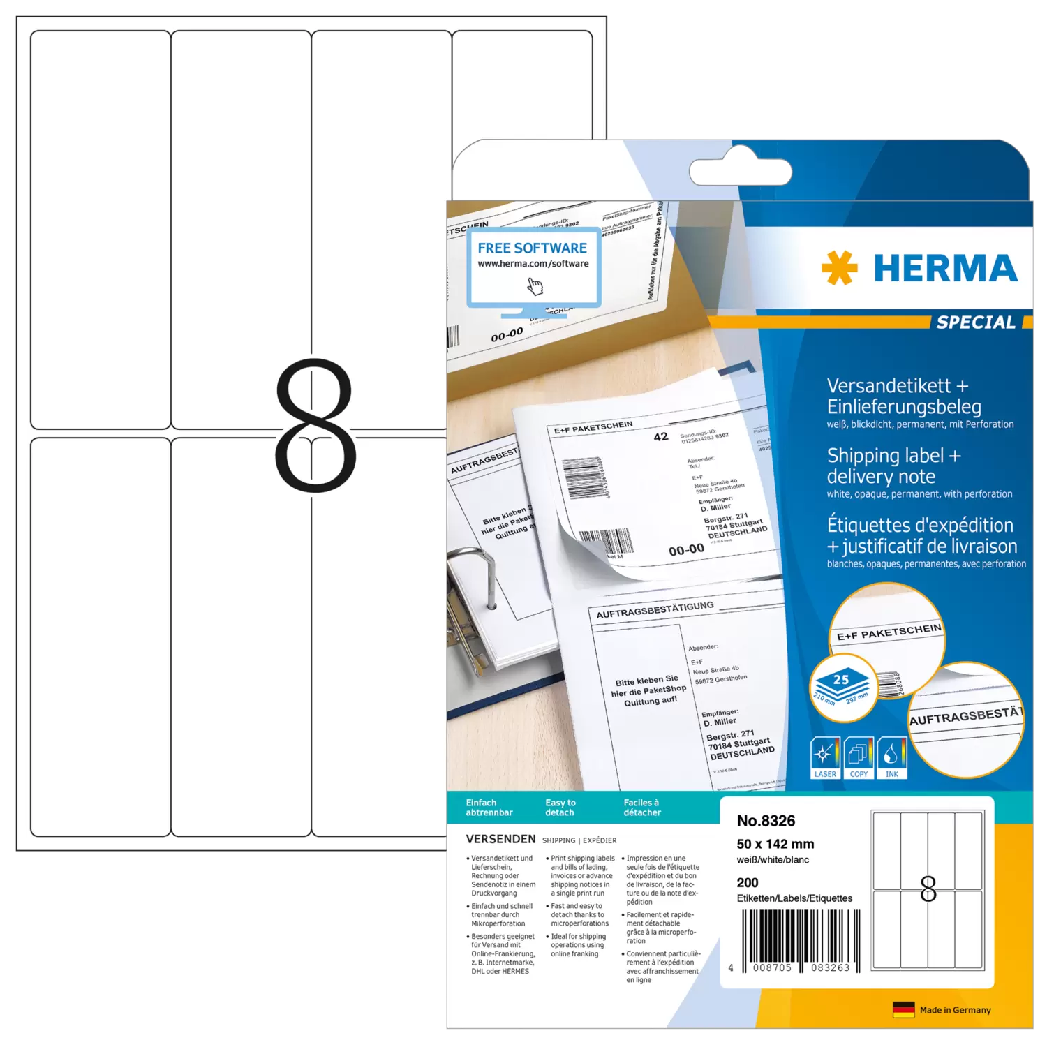 Etiketten voor verzendingsaanwijzingen / waarschuwingen, A4, 50 x 142 mm, wit, permanent hechtend
