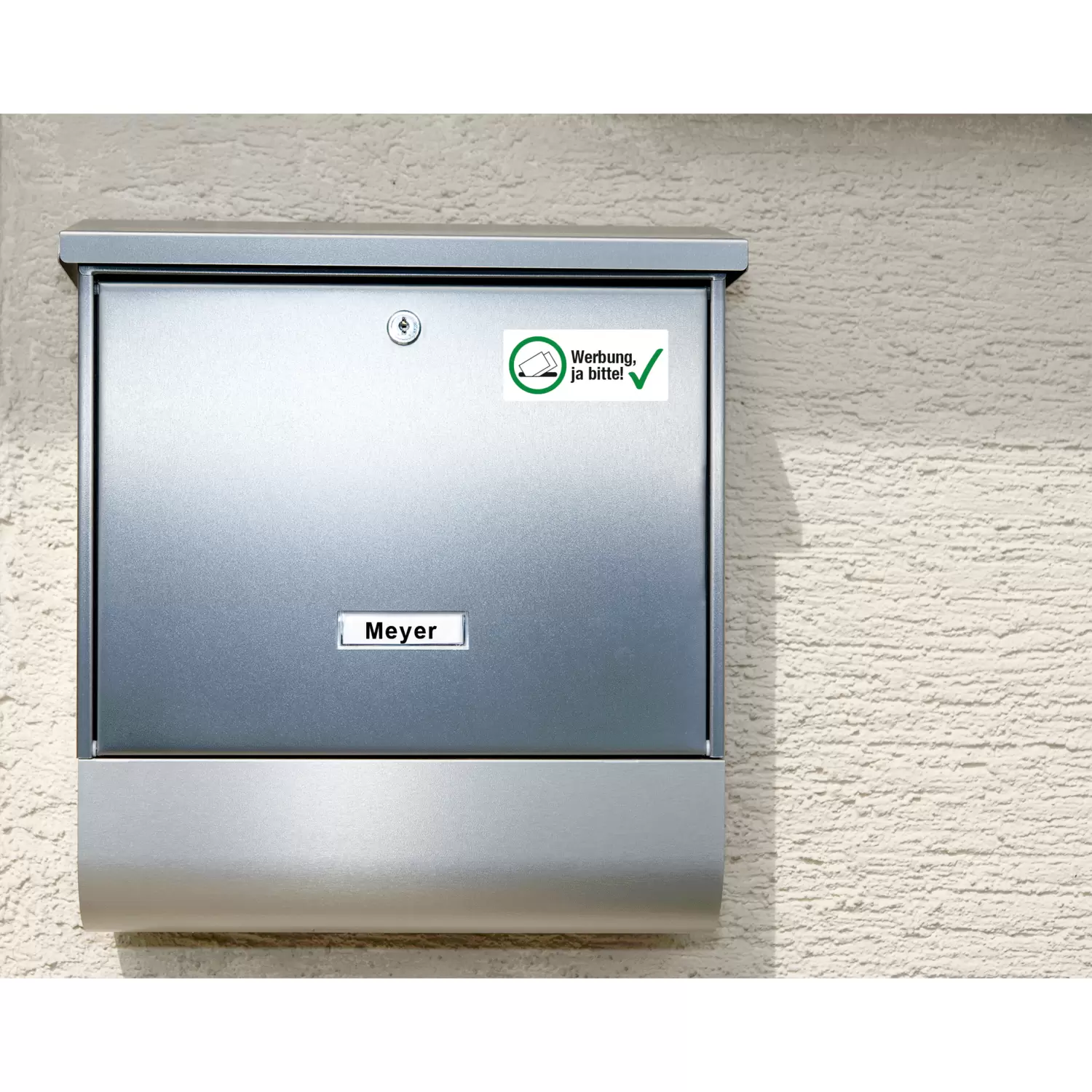 Reclame? Ja graag! Koopjesjagers opgelet! Wie geen voordelige aanbiedingen in de buurt aan zijn neus voorbij wil laten gaan en graag in reclamefolders neust, kan nu het zekere voor het onzekere nemen. Breng eenvoudig het wind- en weervaste folie-etiket op de brievenbus of krantenbus aan en mis voortaan geen enkele aanbieding meer. Elke verpakking bevat drie etiketten met een formaat van 79 x 34 mm, zo passen de etiketten op elke brievenbus en elke krantenbus.