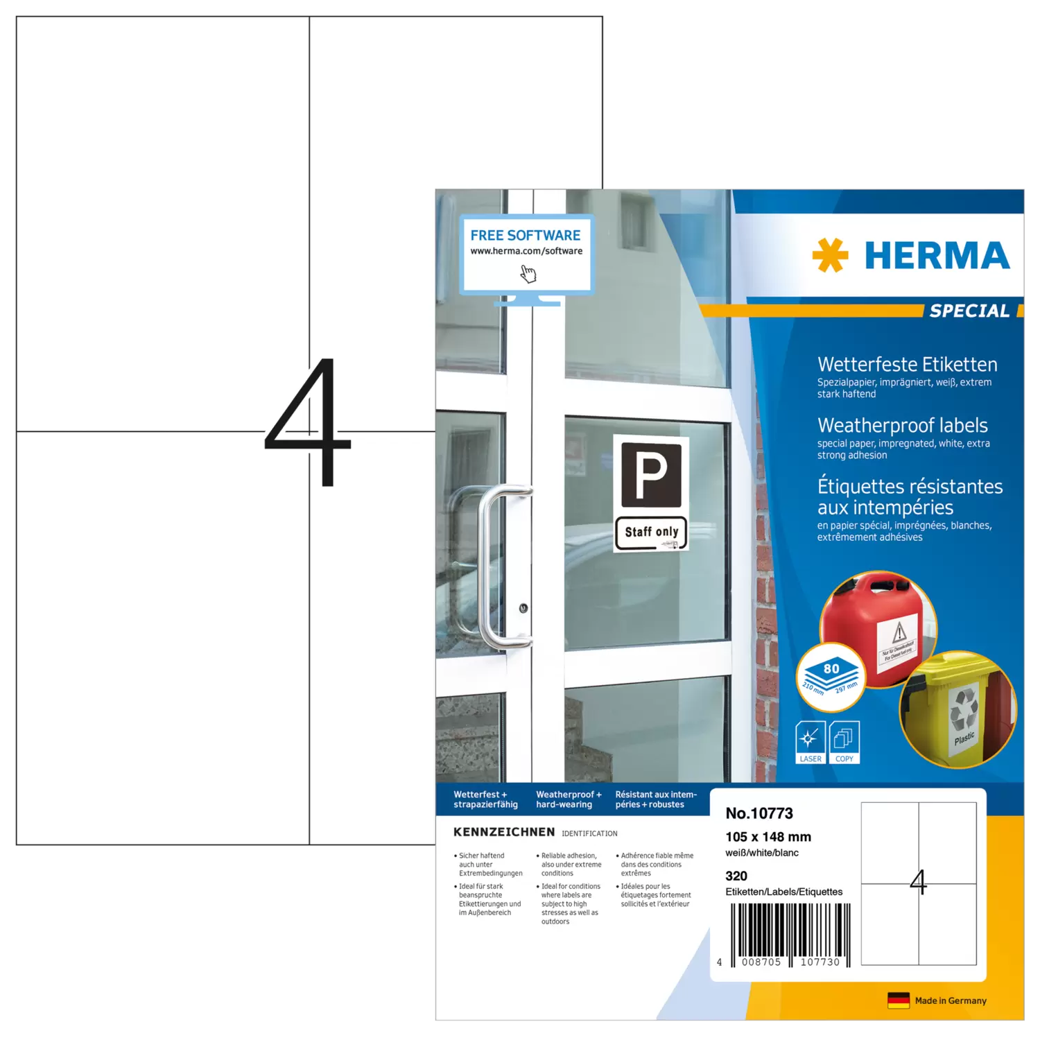 Weerbestendige etiketten, A4, 105 x 148 mm, wit, extreem sterk hechtend, geïmpregneerd