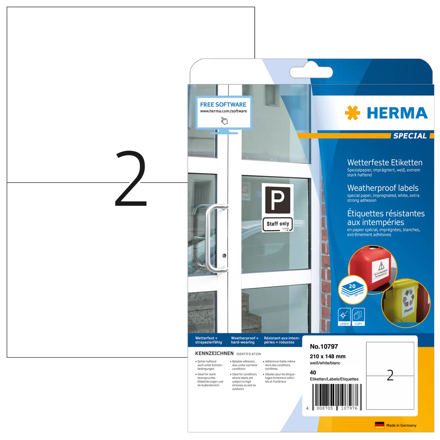 Weerbestendige etiketten, A4, 210 x 148 mm, wit, extreem sterk hechtend, geïmpregneerd