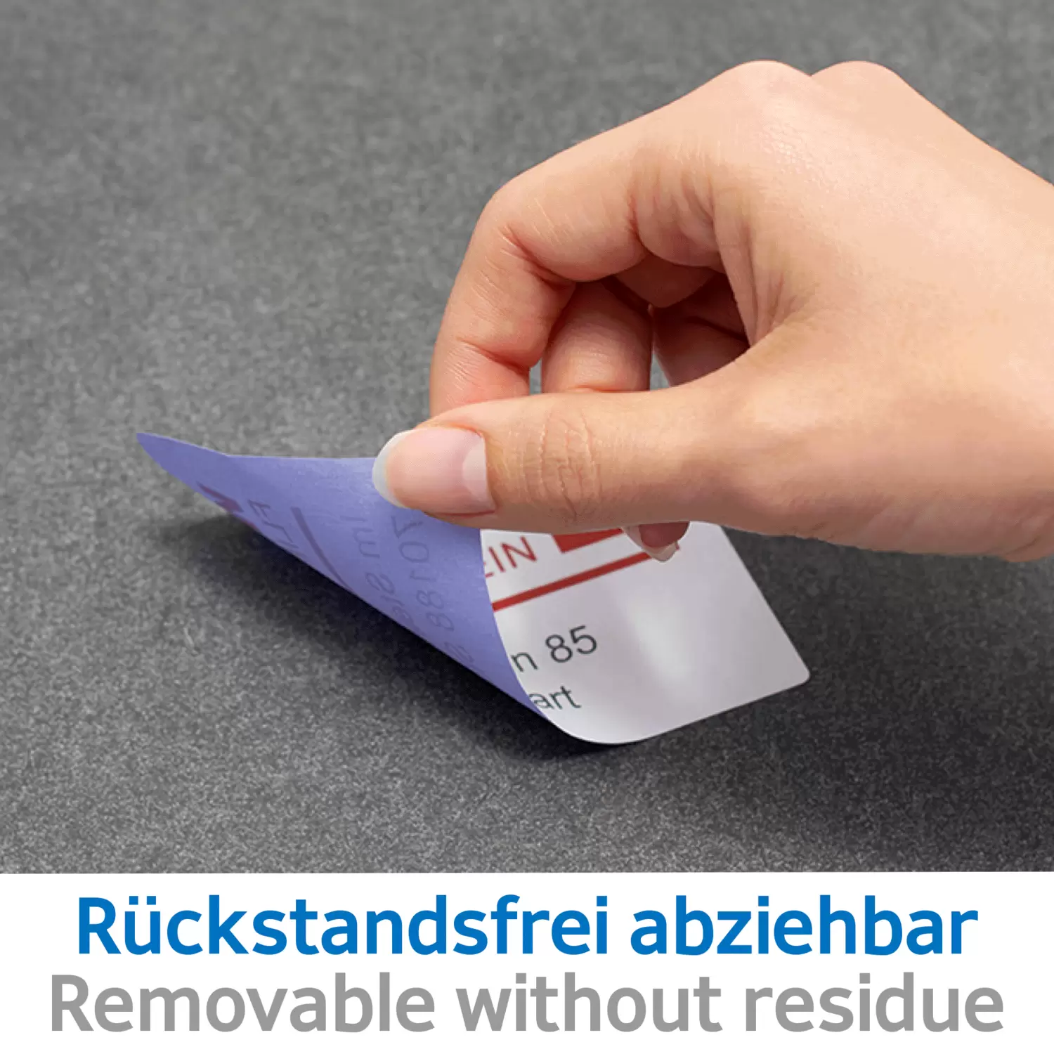 Verwijderbare etiketten kunt u voor talloze toepassingen gebruiken. Op kantoor, in het home office of voor huis-tuin-en-keukengebruik, verwijderbare etiketten kunnen snel worden opgeplakt voor noodzakelijke aantekeningen en zonder resten achter te laten weer worden verwijderd.