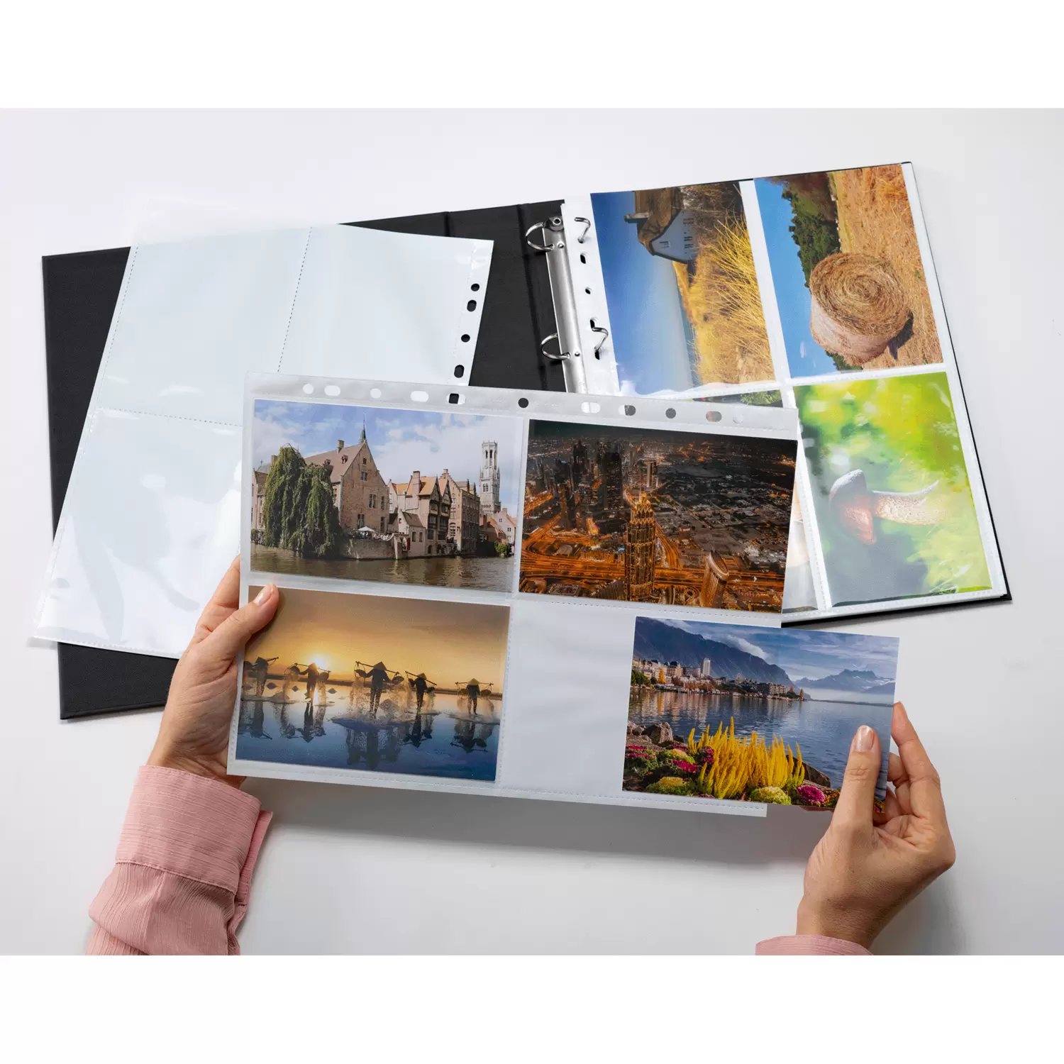 De HERMA Fotophan transparante fotohoesjes zijn de praktische organizers en archiveringshulpmiddelen voor foto's, prentjes, ansichtkaarten, toegangskaartjes en nog veel meer. Gewoon in de transparante vakjes steken en meteen is alles goed opgeborgen - ongecompliceerd en helemaal zonder lijmen! De transparante fotohoesjes zijn gemaakt van stevig wit polypropyleen, met aan weerszijden opgesealde helder-transparante steekvakjes voor foto's tot 10 x 15 cm staand formaat. Zo kunnen 8 foto's per hoesje goed en beschermd worden bewaard. De hoesjes zijn absoluut weekmakervrij en archiveringsbestendig, zonder chemische inwerking op de foto's. Elke verpakking bevat 10 hoesjes met plek voor 80 foto's. Dankzij de praktische europerforatie kunnen ze in alle gangbare ordners, albums en ringbanden voor DIN A4-formaten worden opgeborgen. Ideaal zijn de HERMA Fotobooks, verkrijgbaar in 5 prachtige kleuren. Perfecte bescherming, absoluut vrij van vuil, vouwen of vingerafdrukken.